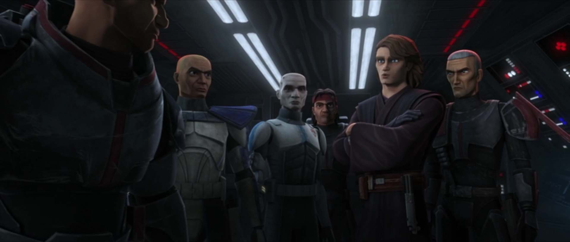 To begin the season, Fives took the center stage as he fell victim to Chancellor Palpatine’s plots. Fives helped a distressed clone trooper, Tup, who murdered his Jedi Master. While Fives discovered that there was a hidden code in the inhibitor chips, Tup died from the removal of his chip. As Fives is considered deranged himself, the Republic forces hunted him down, eventually shooting him to death.