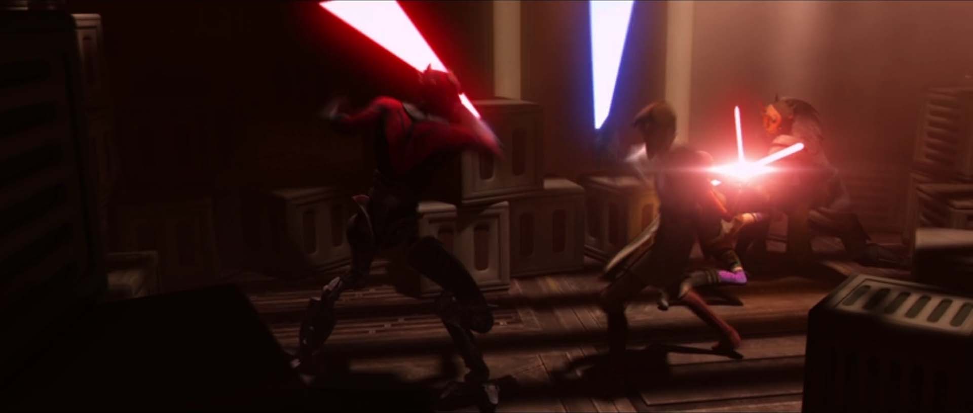 Meanwhile, Darth Maul resurfaced as a threat to the Republic. As Ahsoka aided Bo-Katan against Darth Maul, the events of episode III occur in the background. Even though she learned from Darth Maul that Sidious intended to make Anakin his new apprentice, she refused to believe it. Sadly, she discovered that Maul told them the truth as she felt her former master fall to the dark side as clone trooper turn on the Jedi, including her