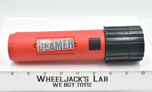 Next up, the flashlight toy then uniquely transforms into a Flash Craft vehicle. Like the alarm clock, this toy also features the very practical purpose and ability of a real working flashlight. This toy also comes with the character, Skannar, the heroic explorer. As told on the back of the box packaging, Skannar prefers to work solo but contributes greatly to his heroic team of computer warriors. His super quick and observant abilities to crack any code from the messages sent by viruses proves his important standing within the other cyber heroes. This toy, also released in 1989 by Mattel, transforms into the flying Flash Craft with just a few removable and movable pieces. The button on the side of the flashlight also turns on the flashlight for practical everyday use and extra fun play opportunities.