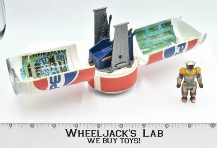 The Hyper Hoverjet Pepsi Can takes the next spot on our short-lived Computer Warriors blog. This everyday item stands upright, hidden of its real abilities, until it opens up to reveal the Hyper Hoverjet. The Pepsi can splits down the middle, opening up to the hoverjet that flies around, defending the computer warriors from evil. When the can opens, the hoverjet can be removed from the can base. The bottom of the hoverjet then shows a beast module launcher to fire at enemies. The figure sits under the blast module launch lever for the character to control the battle zone. Then, on the wings of the jet, quantizer weapons move around for ultimate defensive accuracy. With the sides of the can open, the two spaces utilize as storage for the blast module.