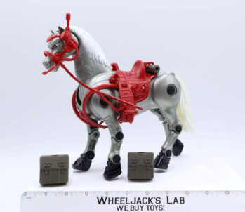 Marshal BraveStar’s robotic stallion, Thirty-Thirty, takes the 2nd spot on our list. Thirty-Thirty appears painted entirely in a shiny silver with white hair, black hooves, and bright red accessories. Marshal’s horse also comes with a wide variety of accessories. These include a scabbard, briddle, two hangers, harness, left and right rein, left and right stirrup, saddle, and two nuggets of kerium. As well as these, the robotic stallion comes with two saddle bags, a blister cannon, and barrel extention. Thirty-Thirty also stands at 8 inches tall, along with the figures. The epic design is clearly shown through engraved patterns on the saddle, hair, and other accessories. Multiple points of articulation are also featured in this toy to show Thirty-Thirty on it’s hind legs, prancing around, or just posing fiercely.