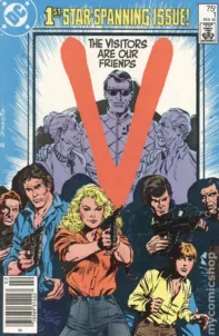 Now, on our Retrospective of V Visitors (V), we have the comic books. From February 1985 to July 1986, DC Comics published an 18-issue series for the V Visitors (V) franchise. The comic series followed the same events as those in V: The Series. Written by Cary Bates, these comics featured the same loved characters and epic plot between the humans and the Visitors. With the art by Carmine Infantino and Tony DeZuniga, these characters come to life on pages through the coloring and graphics. Along with this, Eduardo Barreto did the eye catching cover art. Each comic was edited by Marv Wolfman and consisted of 32 pages across the board.