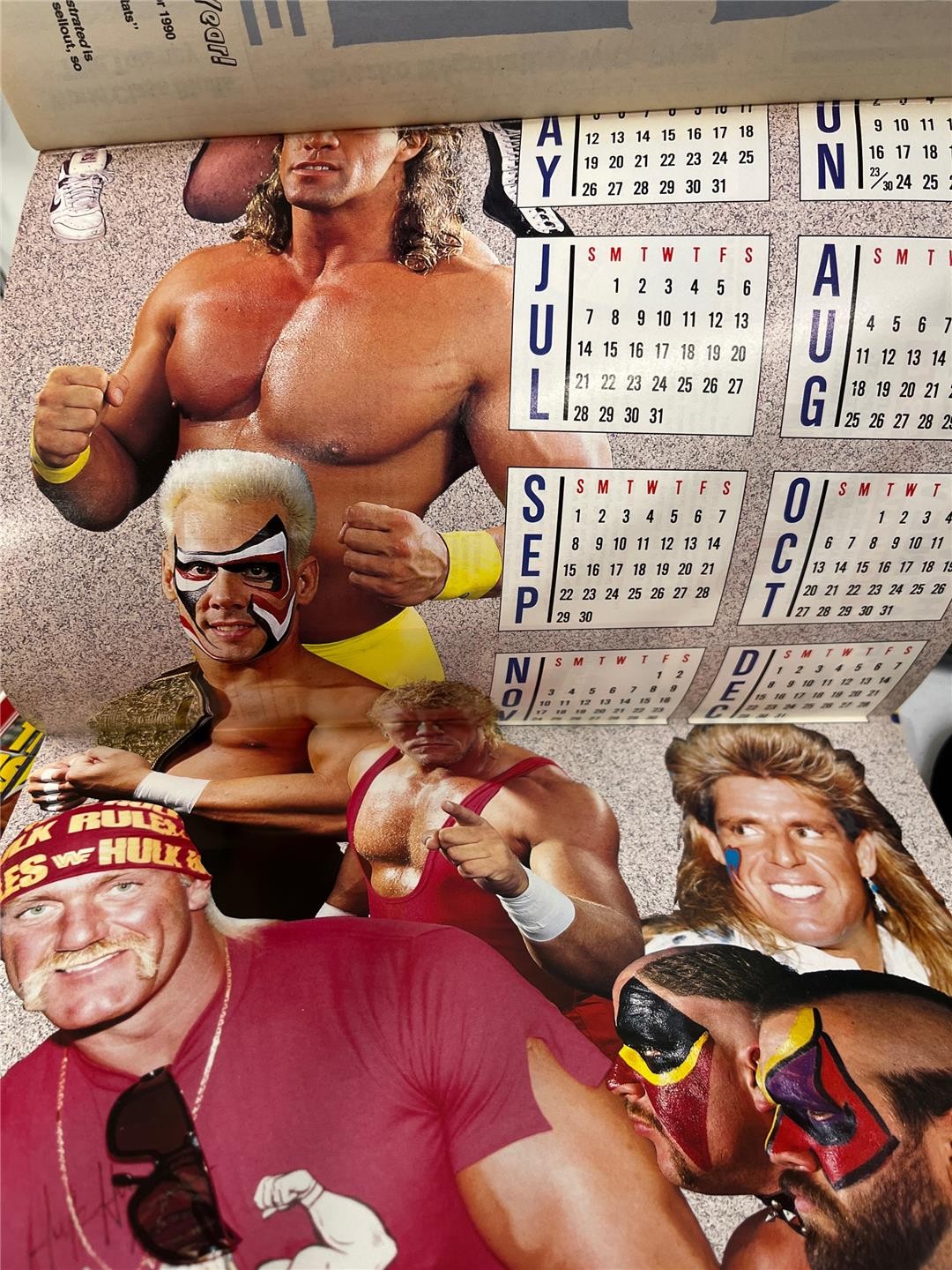 Condition: Lot of 11 magazines includes monthly issues from 1991. Missing December issue. 5 of the issues have Hulk Hogan included as part of collage of photos. 2 issues have Hulk Hogan featured solo on cover. One of the posters is Hulk Hogan. Comes as shown.
