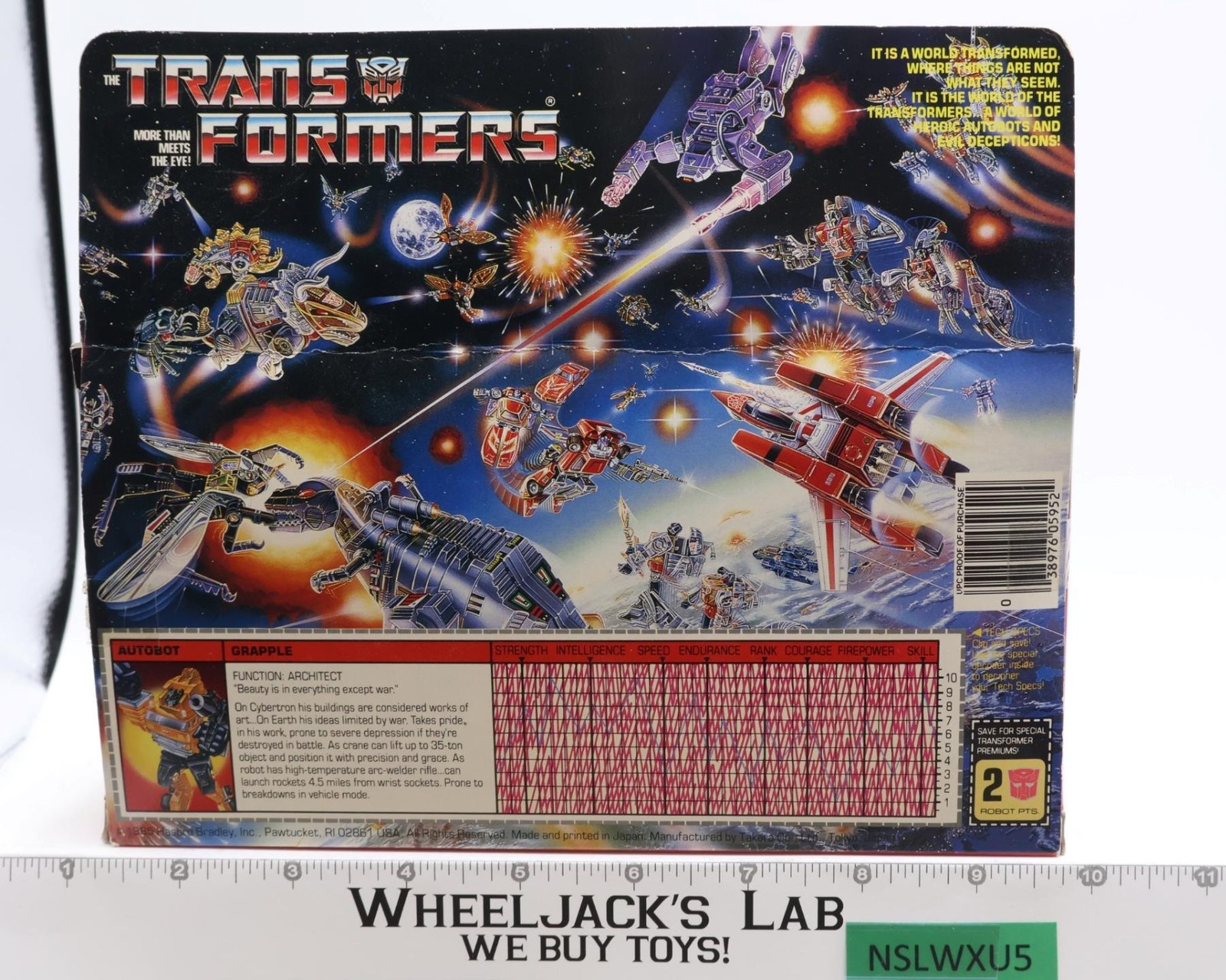 Grapple 100% Complete W/ BOX & INSERTS 1985 Vintage Hasbro G1 Transformers