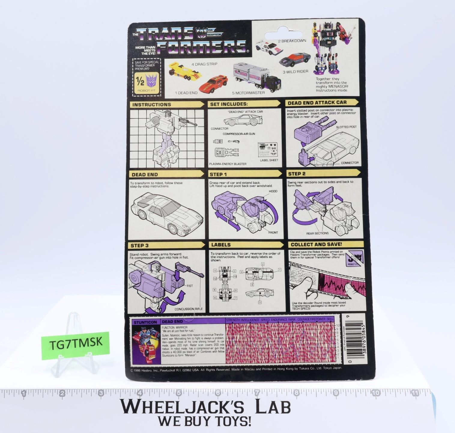 Dead End 100% Complete W/CARDBACK & BUBBLE 1986 G1 Transformers Vintage