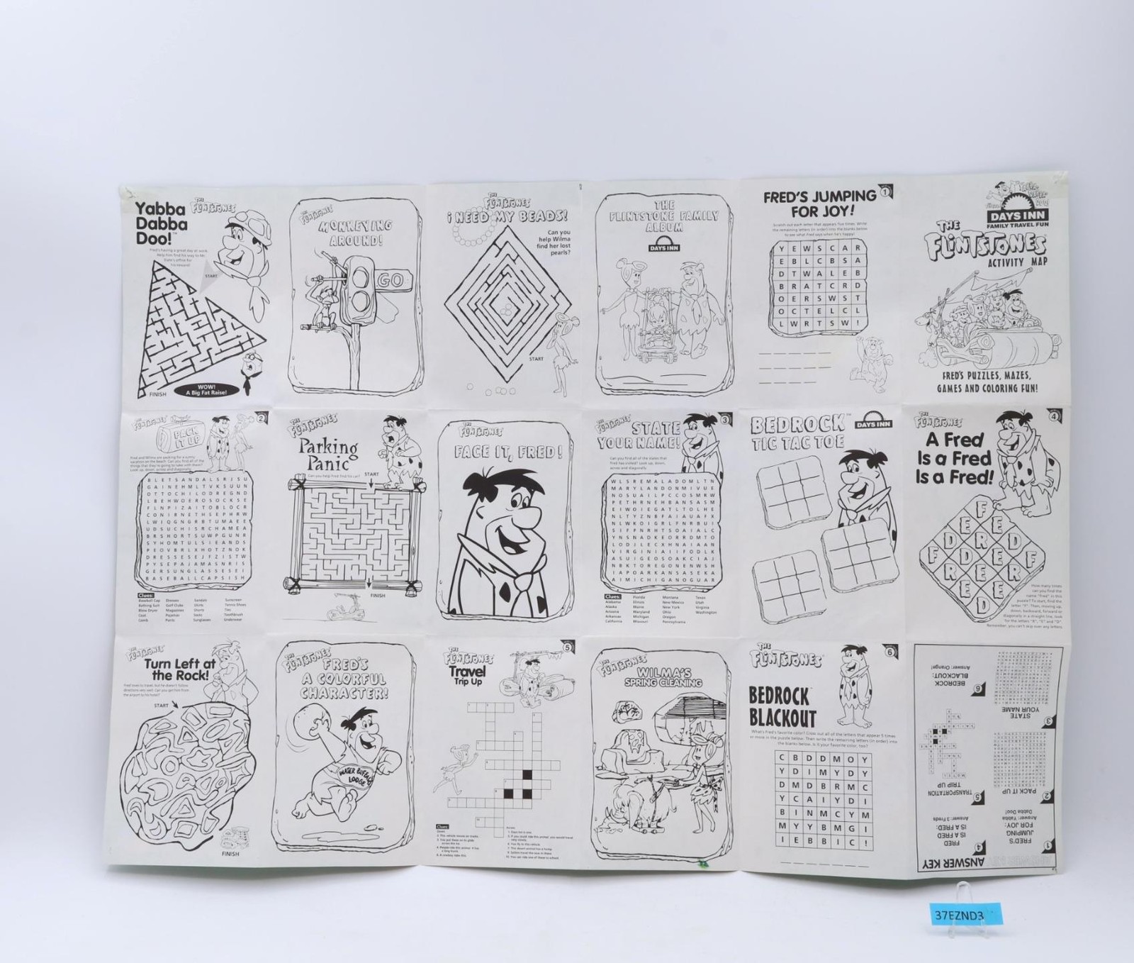 Condition: This listing is for a NEW/UNMARKED Days Inn Flintstones Activity Map. One side has a full color map. Back side has 16 panels of puzzles, mazes, games and coloring activities. No markings anywhere. Answers are included. There are some tears in the corners from tacks. Comes as shown.