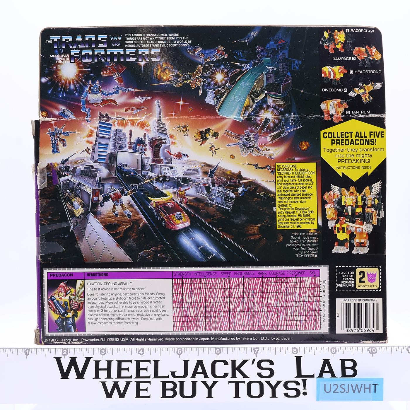 Headstrong Complete W/ Box & Insert Near Mint 1986 G1 Transformers Vintage