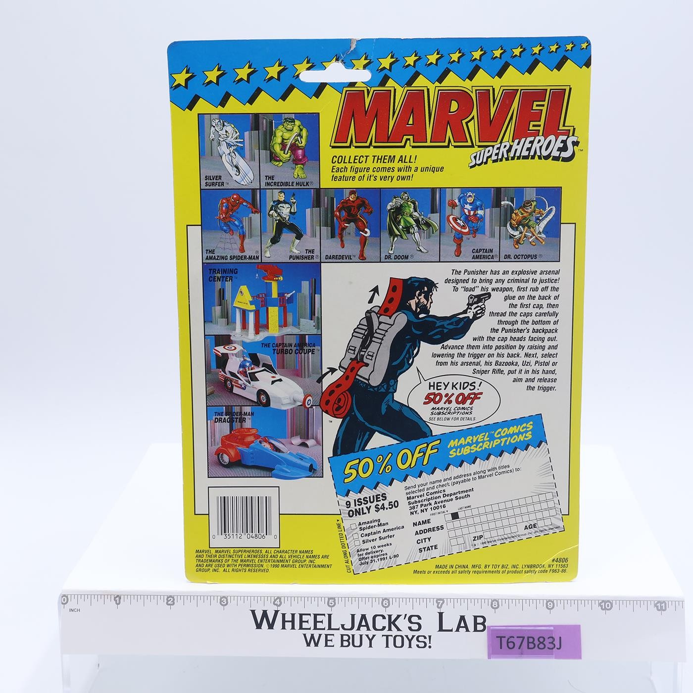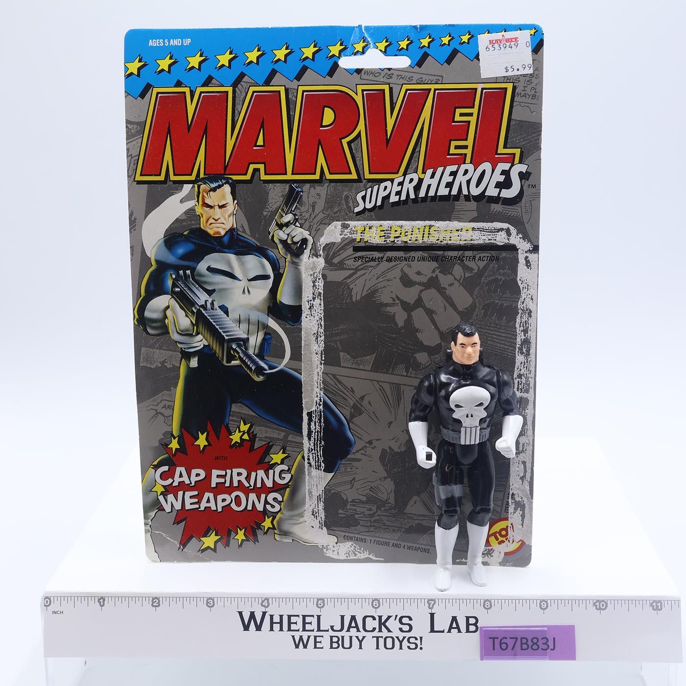 The Punisher Cap Firing Weapons W/Cardback Marvel Super Heroes 1990 Toy Biz