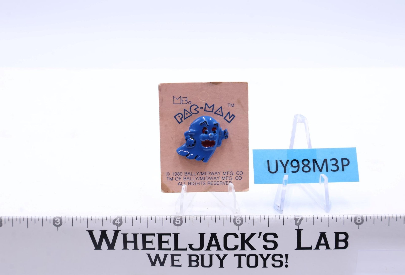Ms. Pac-Man Blue Pin Pinback 1980 Bally/Midway Mfg. Co. NOS