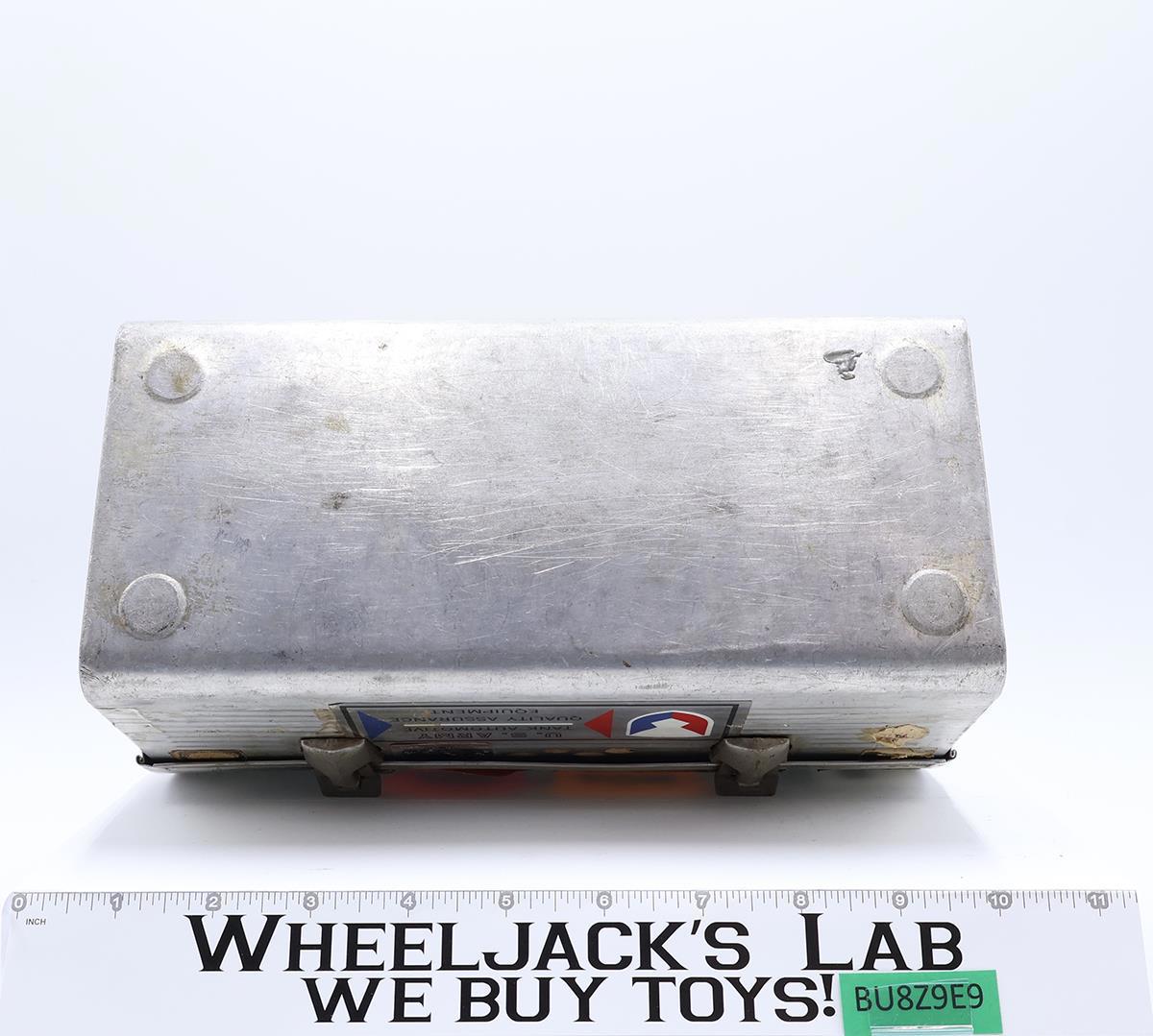 Condition Notes: Box has various vintage stickers on exterior; some taped on. Interior has a name sticker. Hinge pin has bent but is intact. Some cracks along back edge with hinge. Comes as shown.