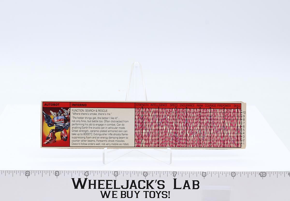 Inferno Action Figure Robot Tech Spec 1985 Vintage Hasbro G1 Transformers