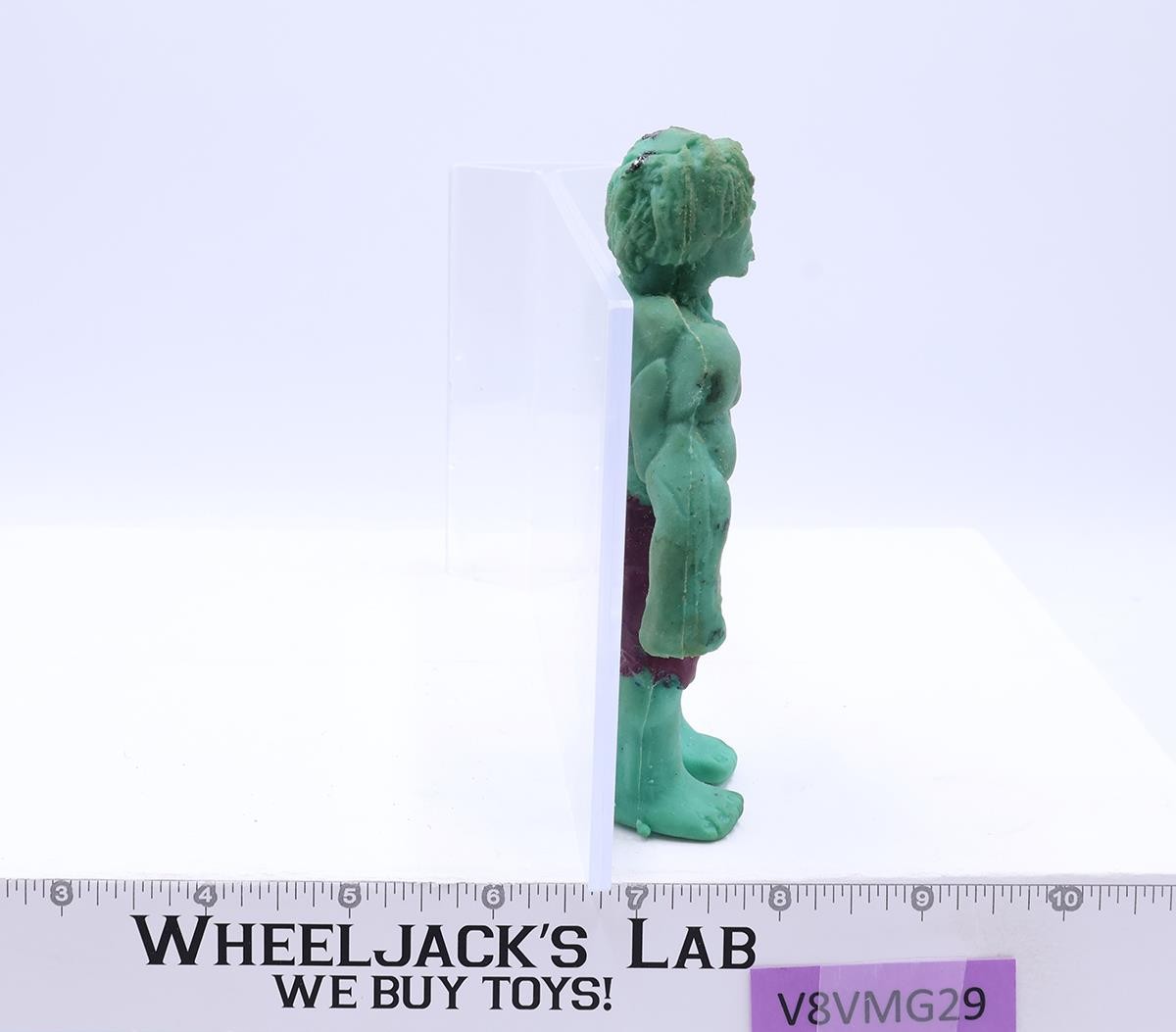 Figure Condition: Rated 70 with heavy wear. Rubber has pitting with most concentrated on his back; figure is starting to crack along the spine. Figure has some black on head and on arms (looks like paint). Bottom of foot has MCG. Our grading scale is 1 - 100 with mint flawless a 100, near mint a 95, excellent a 90, and so on. Comes as shown.