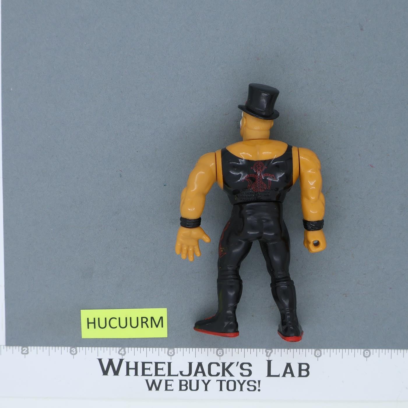 Condition: Rated 90 with light wear. The mechanism works. He has a slight red color transfer on the left shoulder. Tattoos on arms have light fading. My grading scale is 1 - 100, with mint flawless a 100, near mint a 95, excellent 90, and so on.
