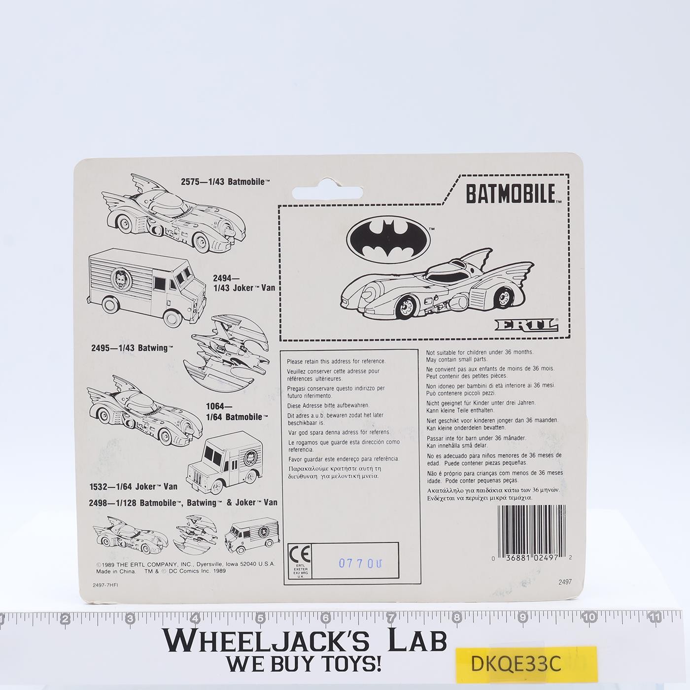 Batmobile Die-Cast Metal #1064 DC Comics Batman 1989 ERTL Vintage Vehicle MOSC