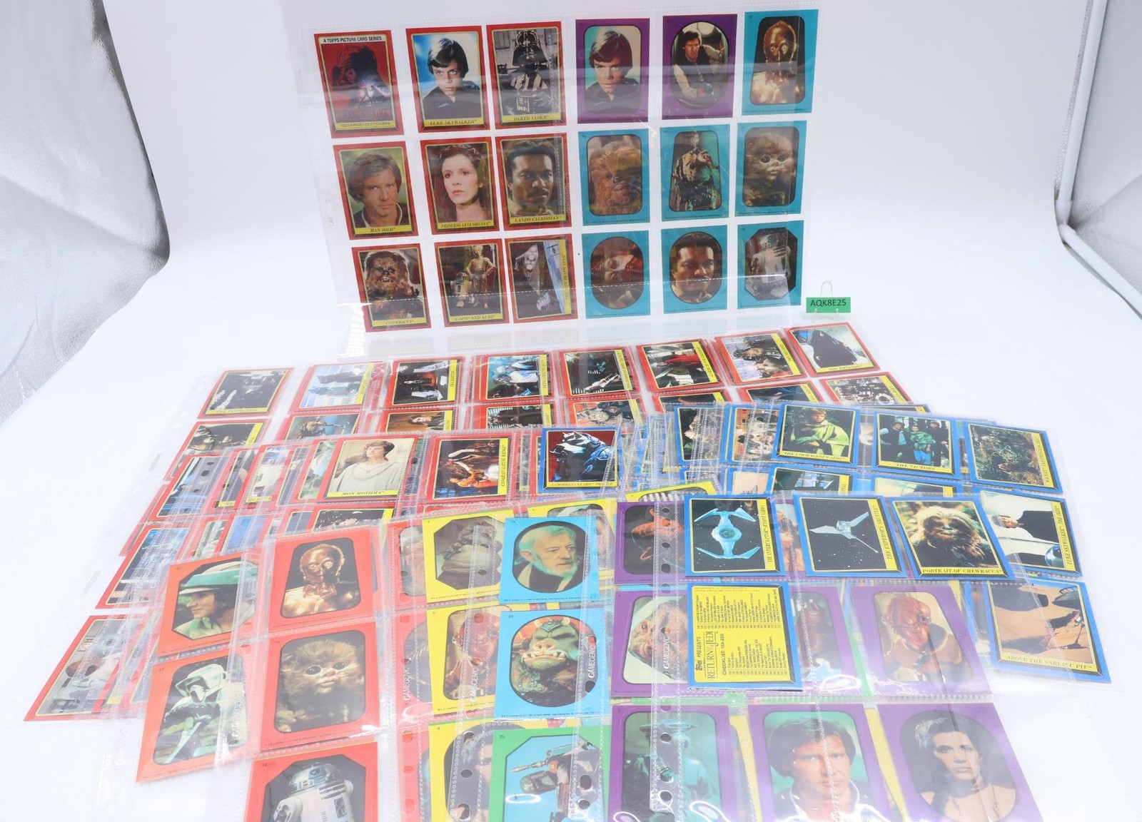 Condition: Complete set of Star Wars Blue Deck and Red Deck Trading cards. The cards have light wear and have been stored in protective sleeves. There are no duplicates. Includes Yellow Stickers 1-11, Red Stickers 12-22, Orange Stickers 23-33, Purple Stickers 1-11, and Blue Stickers 12-22. Comes as shown.