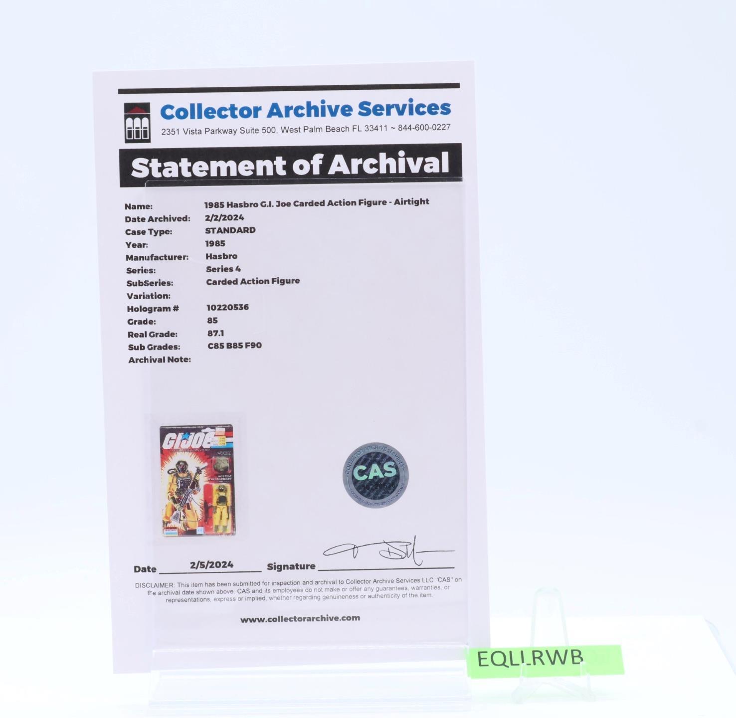 Airtight CAS GRADED 85 85/85/90 GI Joe 34-Back 1985 Hasbro Figure NEW SEALED