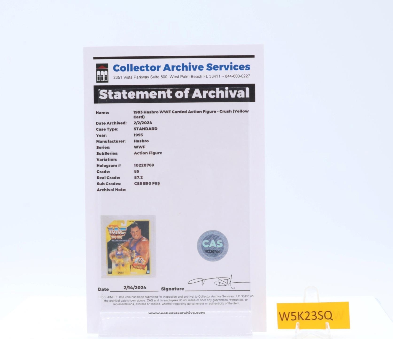 Crush CAS GRADED 85 85/90/85 WWF Series 7 1993 Hasbro Figure NEW SEALED
