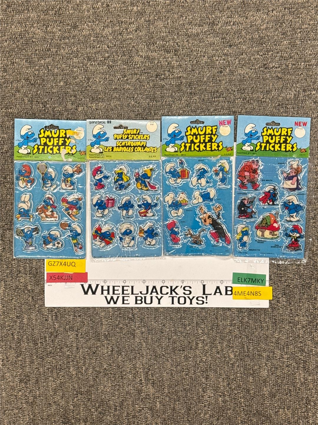 Condition: 1980-1982 LOT of 4 Smurf Puffy Stickers Assortment #1,2,6,7, Sealed. Peyer-Wallace berrie & Co. Comes in original sealed packaging. Some wear on packaging. Comes as shown.