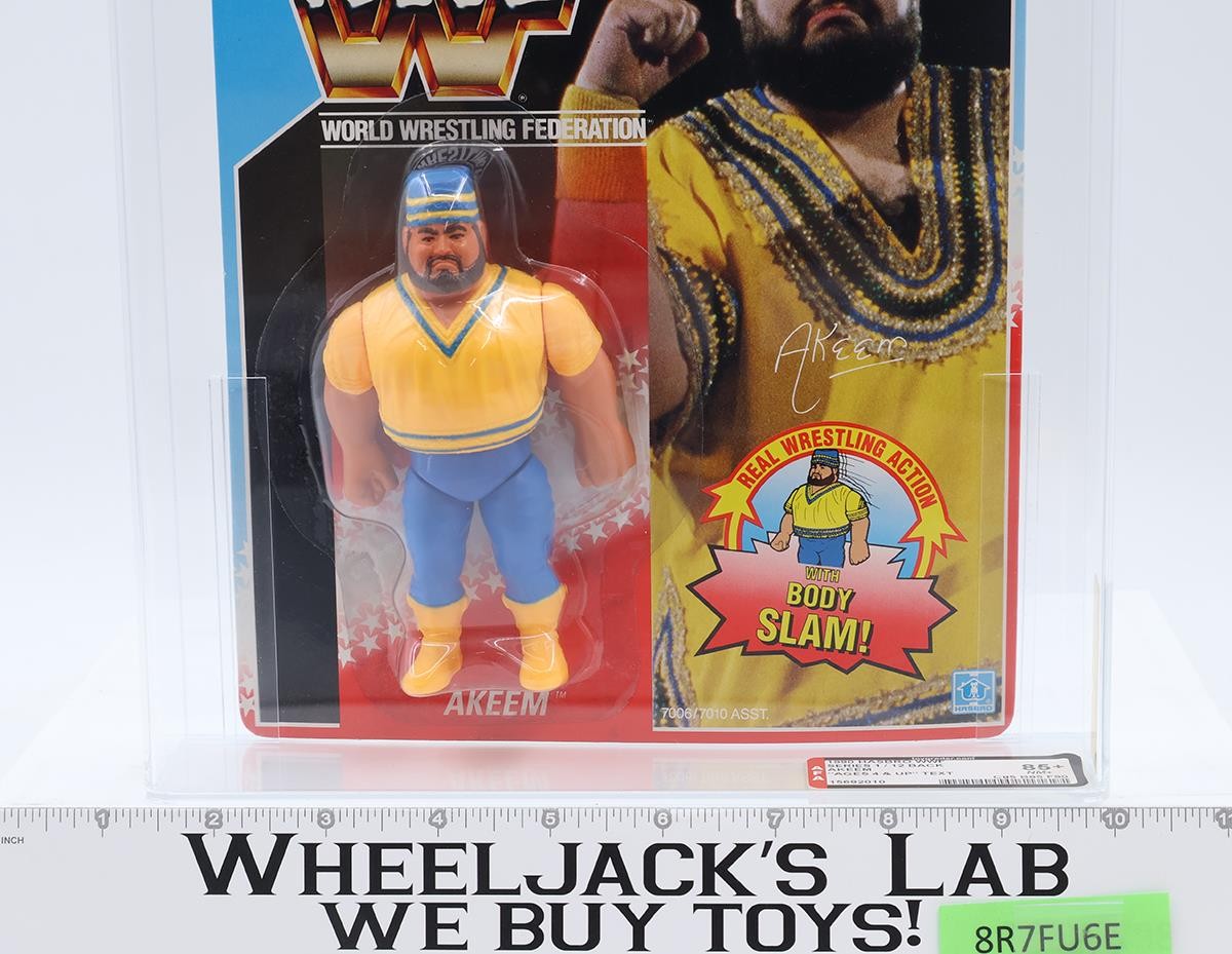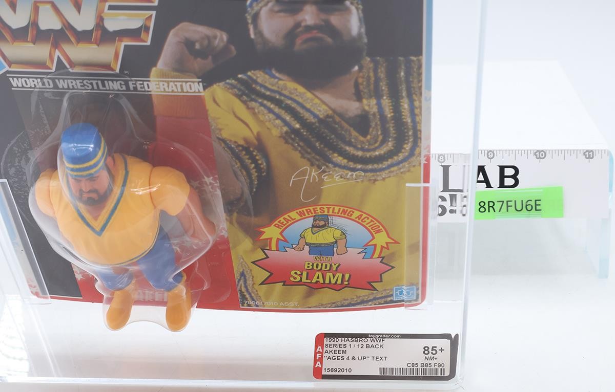 Akeem AFA POP 1 GRADED 85+ 85/85/90 WWF Series 1 12-Back 1990 Ages 4 & Up Text