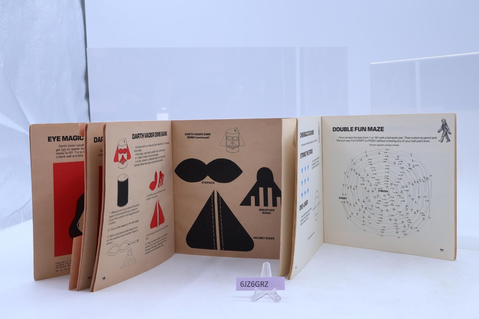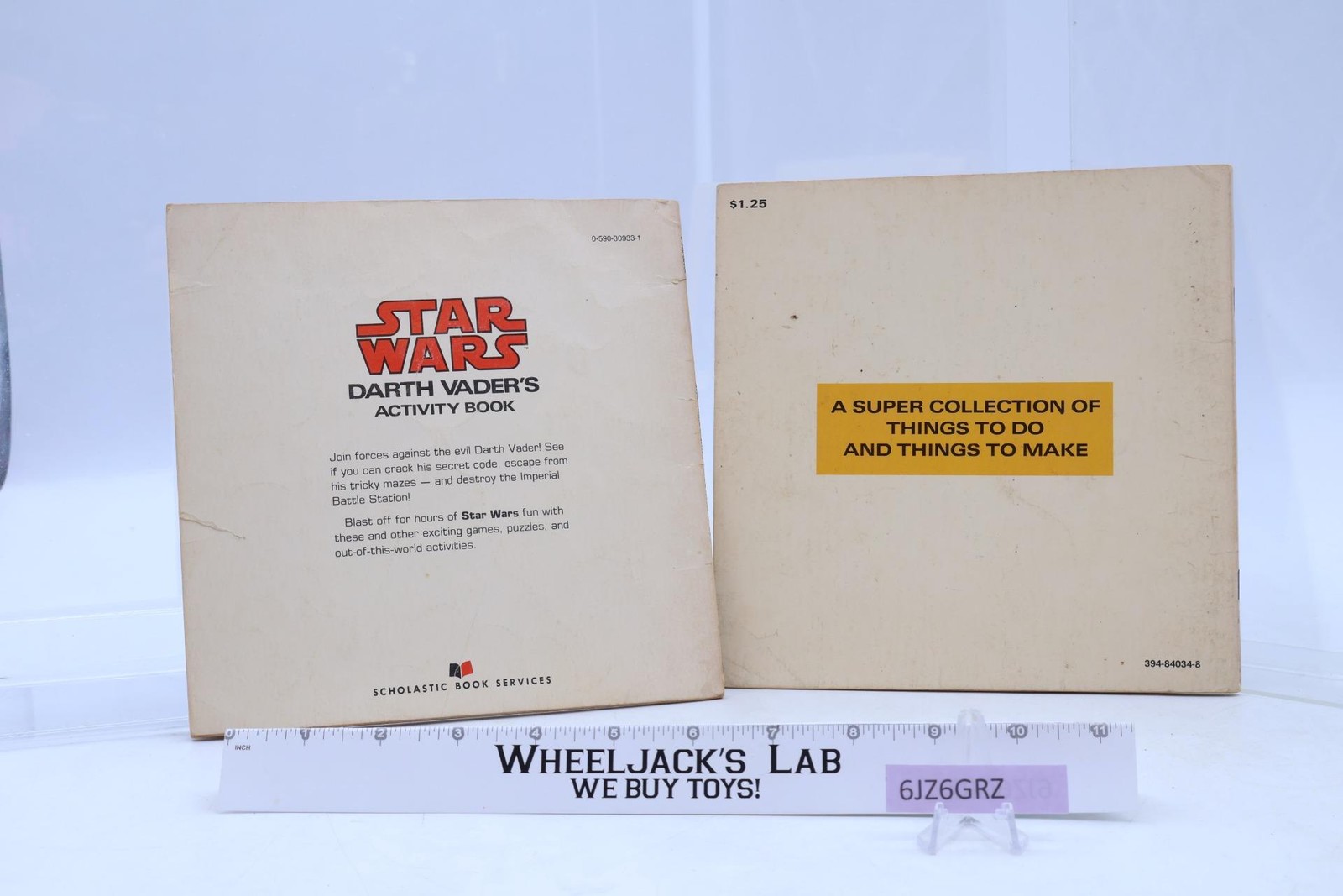 Condition: Books have some wear. Some yellowing of pages, bends on covers. Each book has some used pages but nothing has been cut out or removed (with exception of one item cut from Vader book--a replacement copy of the activity is included). Includes puzzles, games and paper crafts. All pages intact. One book has name written inside front cover. Vader book has several pages with rips on outside edge of pages. Crayon scribble on answer page of Chewy book (does not obscure the solution). Comes as shown.