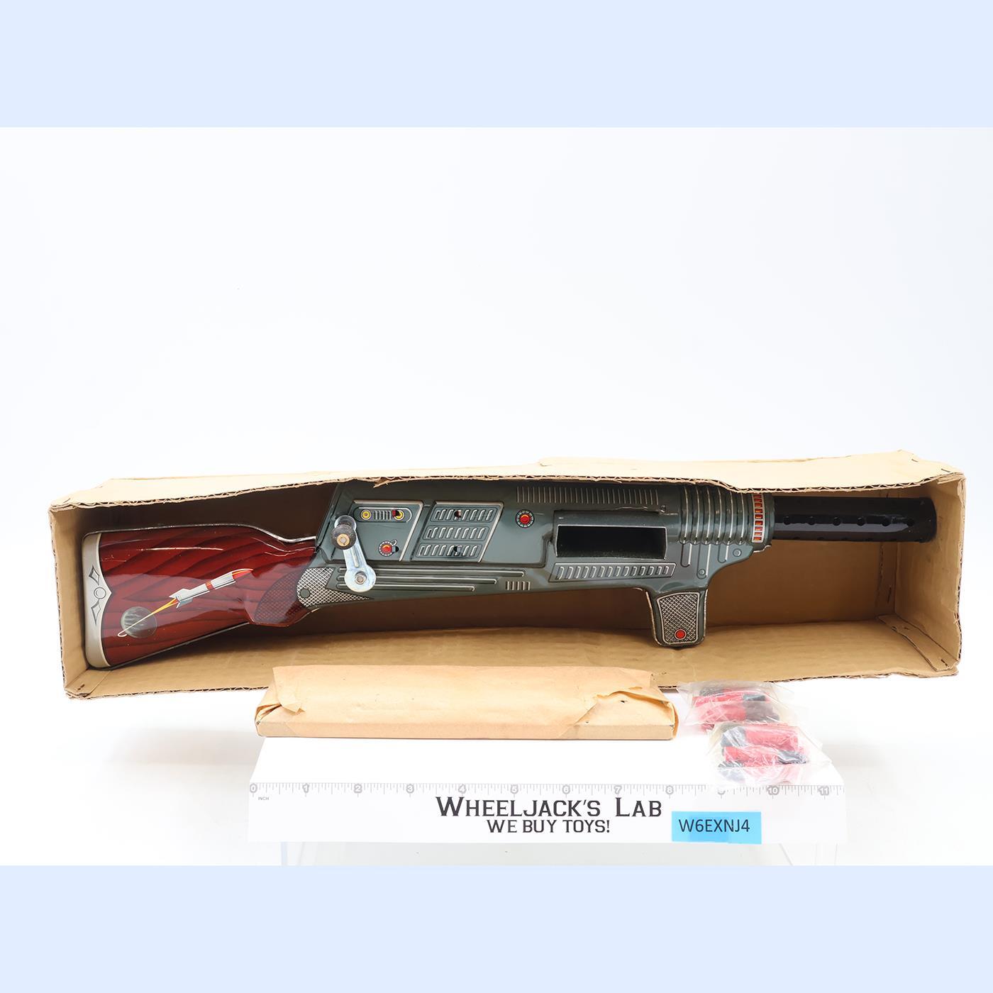 Condition: The item has light wear. The bullets and the cartridge are still wrapped in factory packaging. The hand crank mechanism works. It is approximately 20 inches long. Comes as shown.