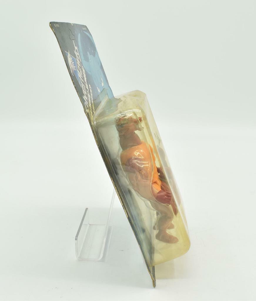 Condition: Factory sealed on card. Card: Has a large crease along the width of the card. Has some wear. Bubble: Has yellow discoloration and there is a dent at the top of the bubble.