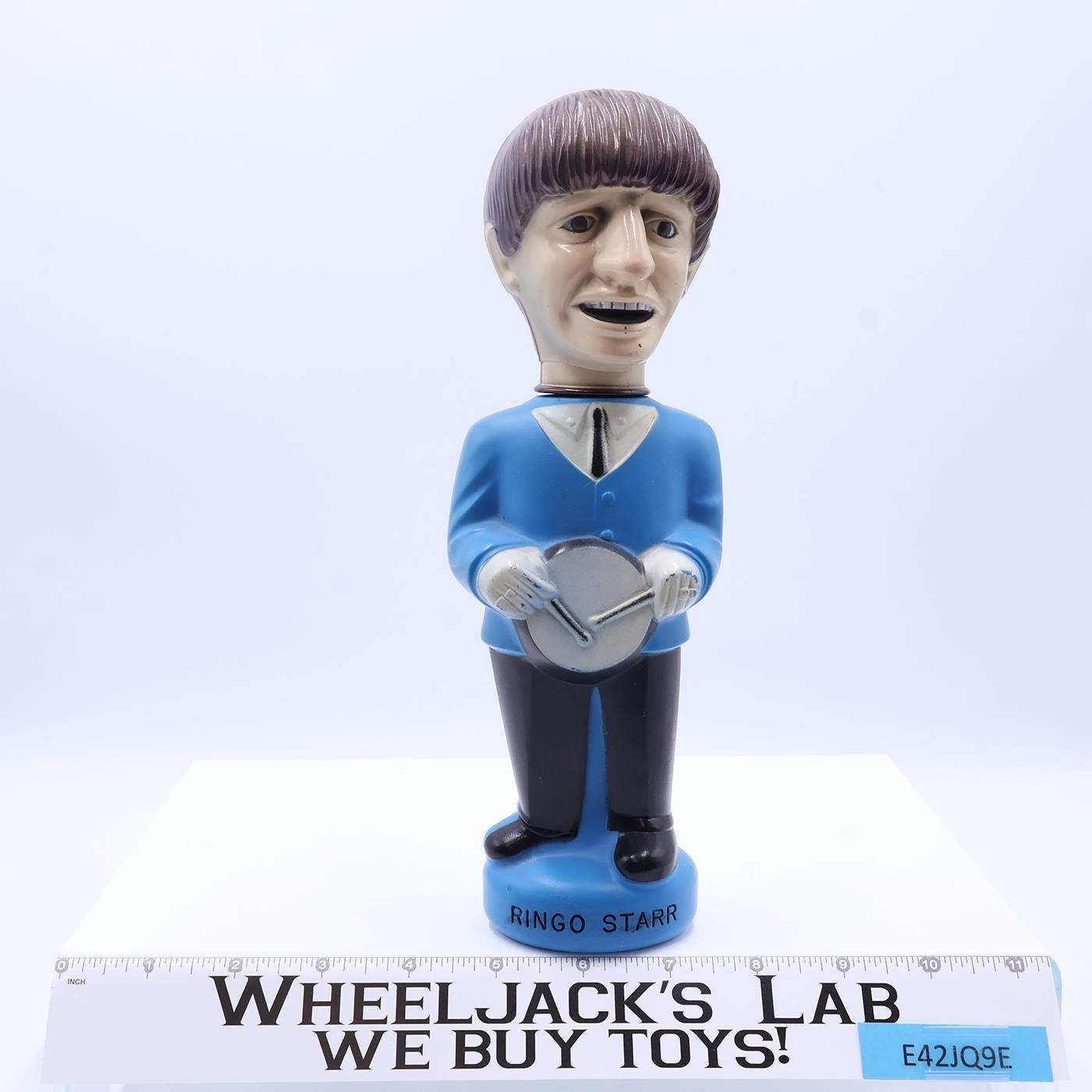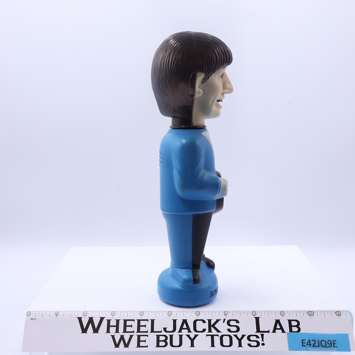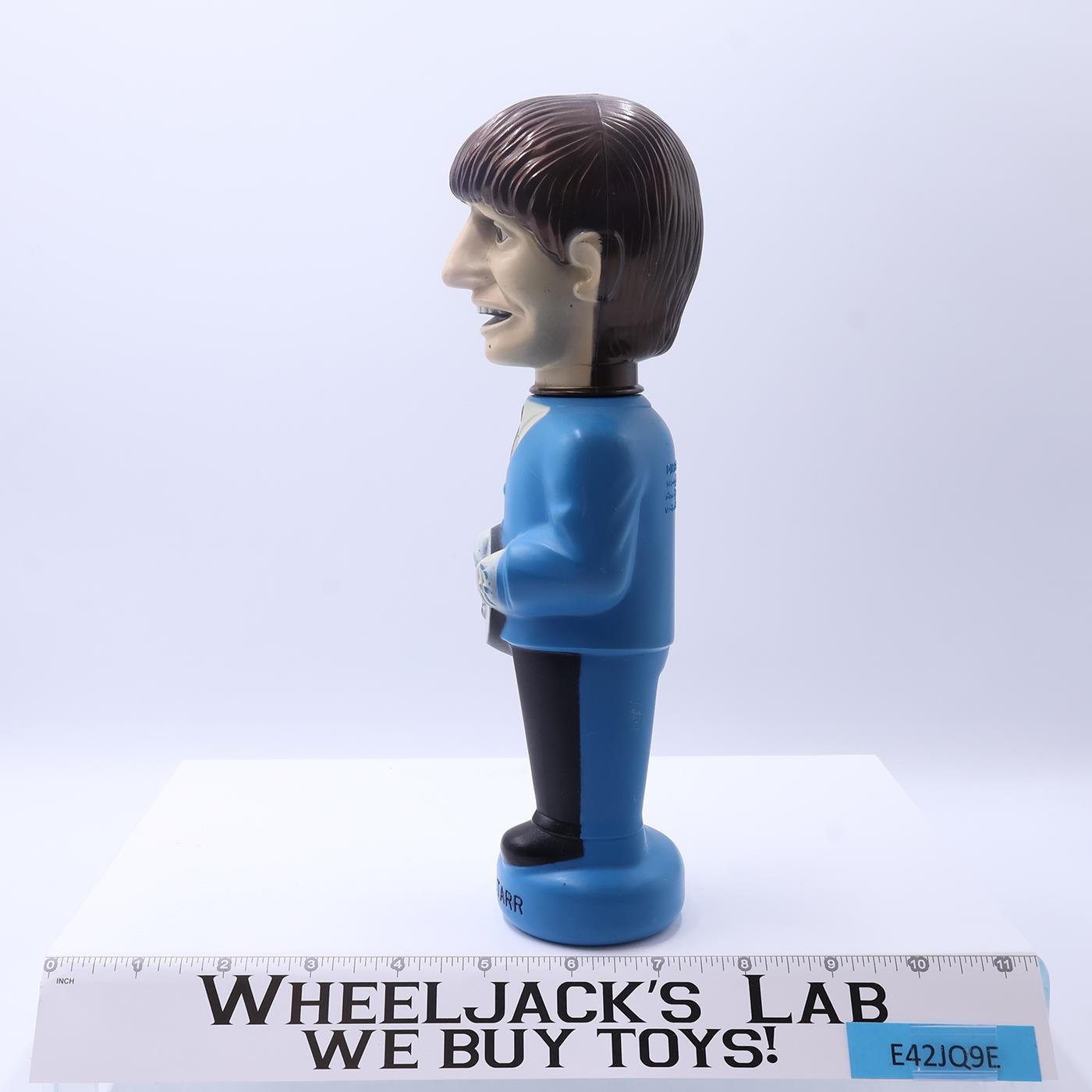 Condition: This is an empty bottle with the likeness of Ringo Starr. There is just a little bit of paint wear on his hands and chin. One hole is in the bottom of the base. Comes as shown.