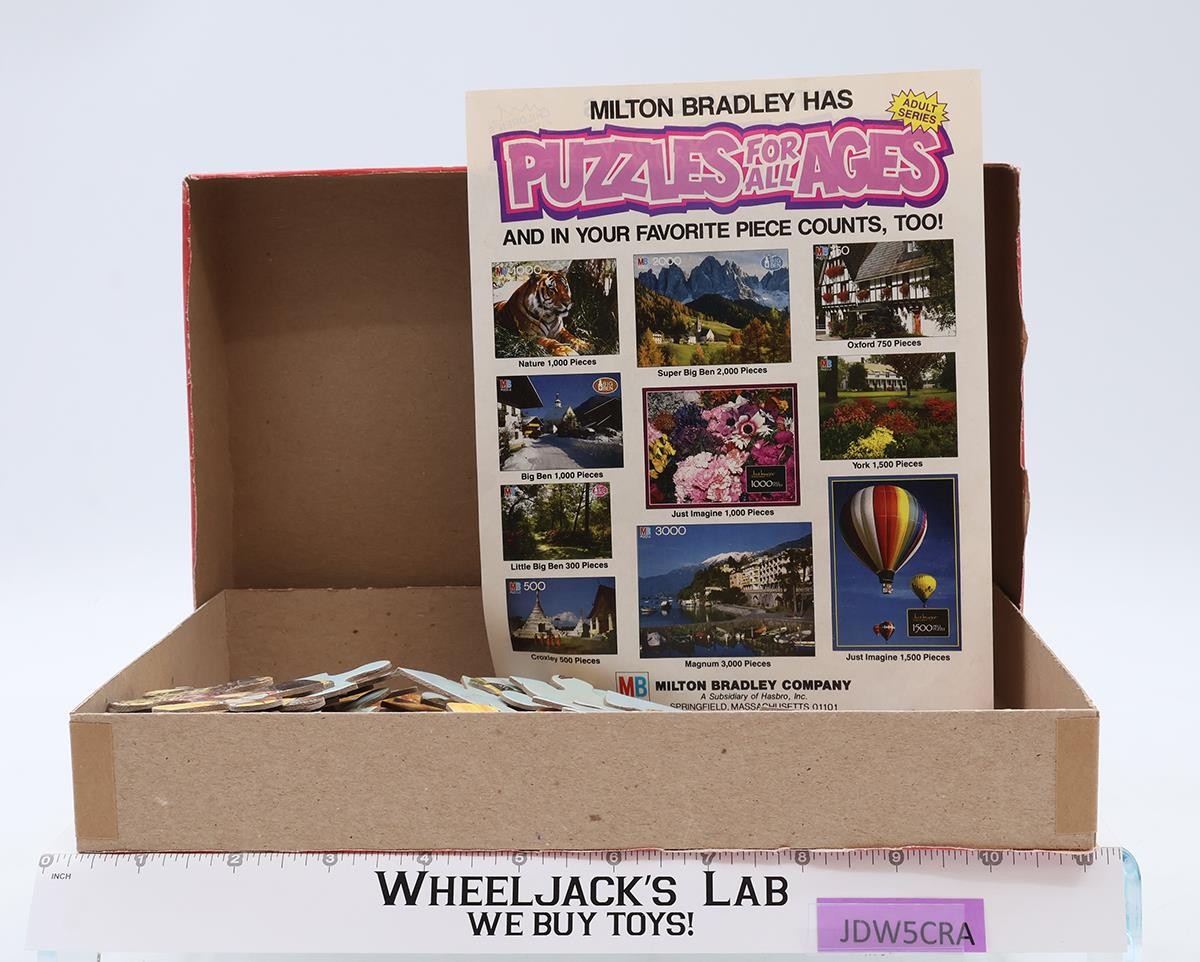 Condition: The box and contents have some wear. Box has light wear with some scuffing and bends. Puzzle pieces have light wear; no ripped pieces. Includes Milton Bradley advertisement sheet showing other puzzle designs. Box contains 60 pieces and the assembled puzzle measures 16" x 11". Dave Dorman created the art for the puzzle. Box is in good shape; corners are all intact. Box top dips in the middle. Comes as shown.