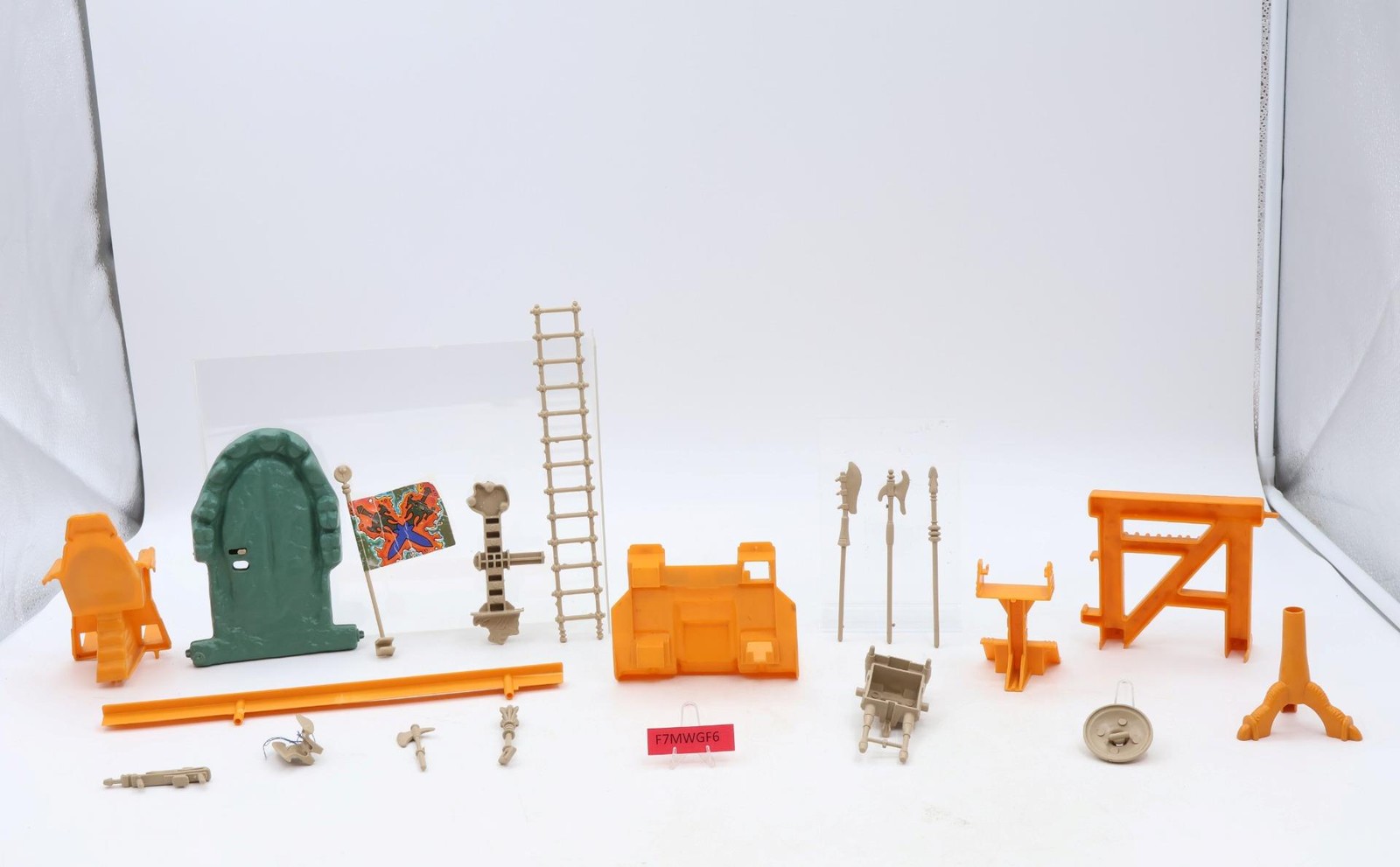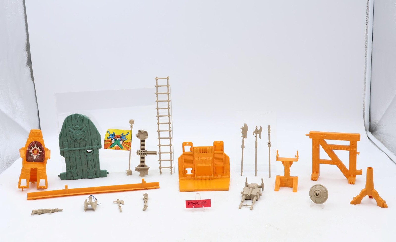 Condition: Rated 83 with light wear, needs cleaning. A couple of pegs on the weapons rack are broken. Our grading scale ranges from 1 to 100, with Mint Flawless rated 100, Near Mint rated 95, Excellent rated 90, and so on. Comes as shown.
