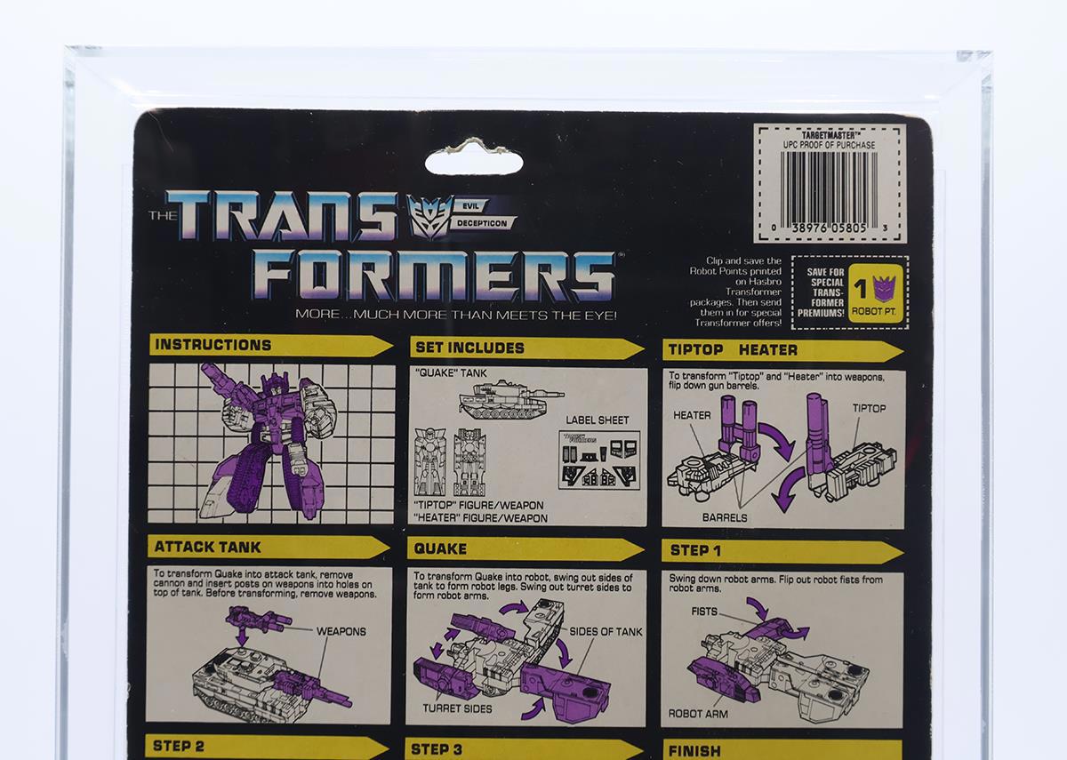 Quake Targetmaster AFA GRADED 80+ 80/85/90 G1 Transformers 1988 Hasbro NEW
