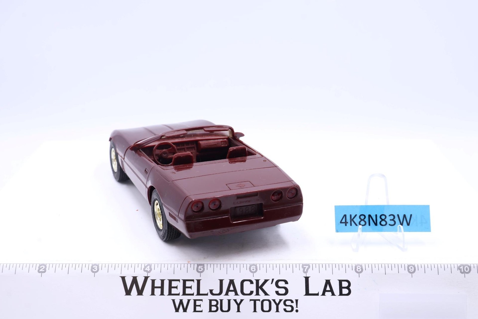1988 Maroon Convertible: Stress mark on driver's seat; stress marks by sideview mirrors. Driver sideview mirror cracked. A few stress marks on parts of underbody.