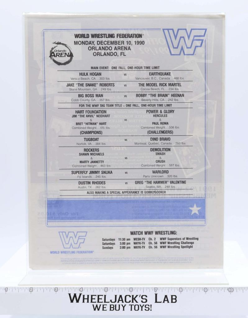 WWF Lineup Sheet Orlando 12/10/90 1990 Program Magazine 186 Hacksaw Jim Duggan