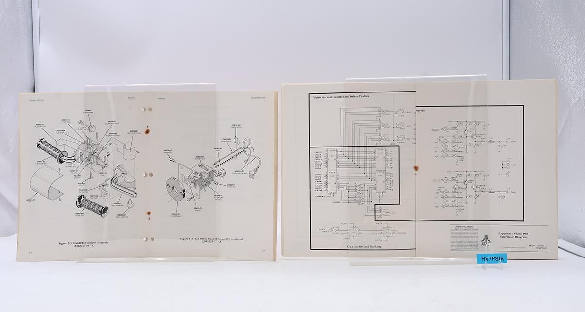 Condition: Operation, Maintenance and Service Manual (1st Printing, 1982 by Atari, Inc) has minimal wear, in near mint condition. Staples intact; staples have a hint of rust. Three-hole punched; light scuffing along spine. Book pages bright and clean; no writing or discoloration. Manual includes illustrated parts lists. Schematic Package Supplement (1982, 1st Printing, Atari) in very good condition. Staples are intact but have rusted. No writing Neither book has any writing or highlighting on the pages. Comes as shown.