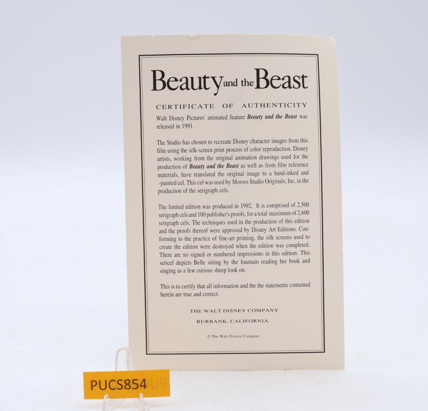 Beauty and the Beast Serigraph SeriCel Disney Certified W/ COA Edition Size 2500