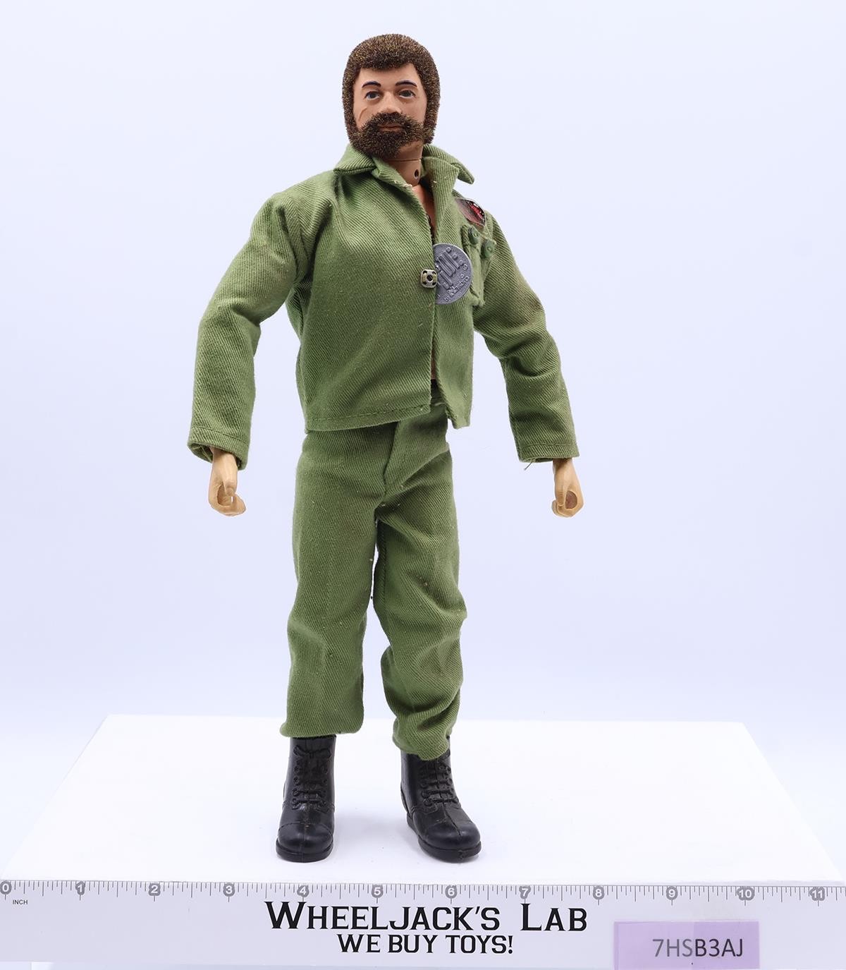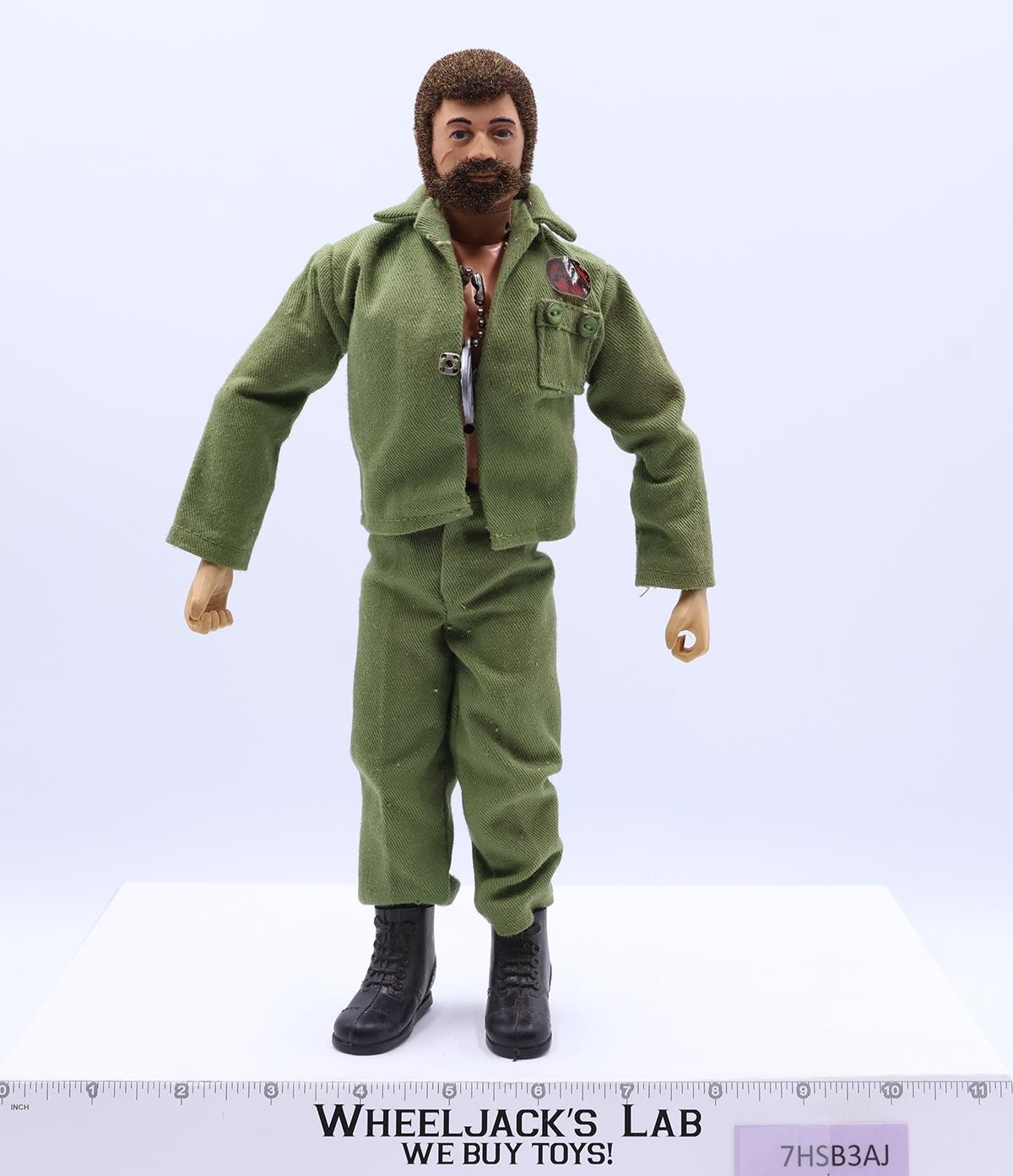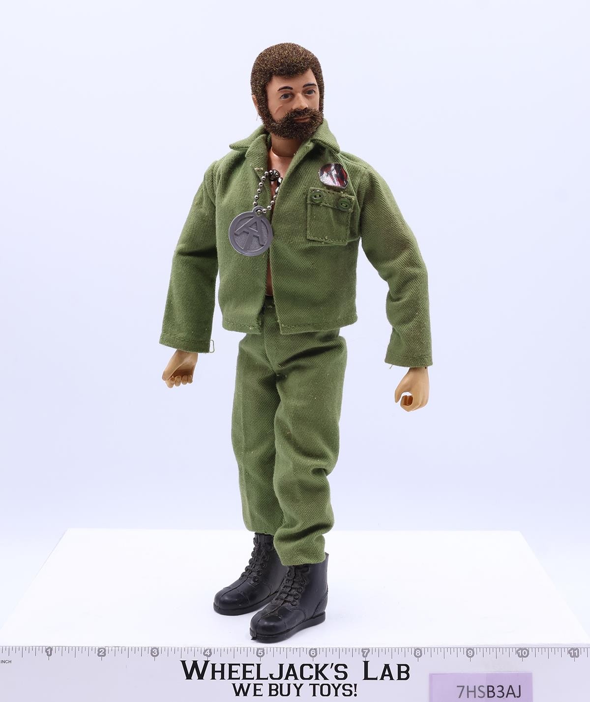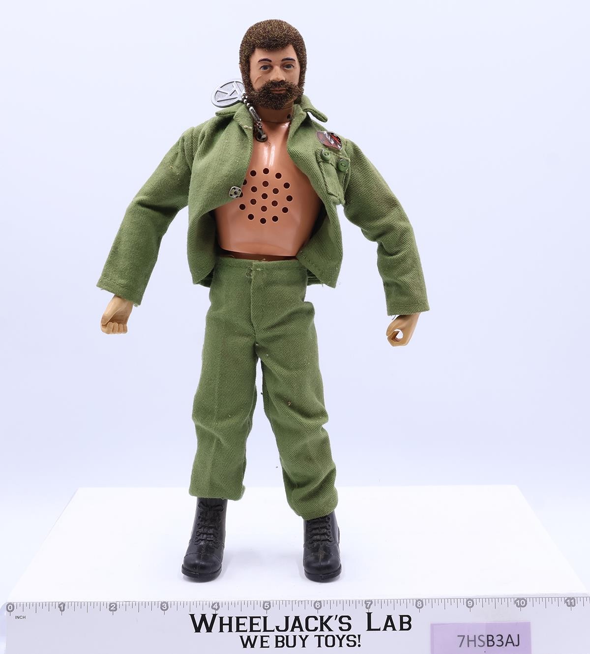 Condition: The figure shows light wear with no visible cracks. He has a full head of hair, and his beard is full except for a patch by his chin. The dog tag pulls out smoothly, and his voice is strong and clear. His kung fu grip hands are in great condition. Comes as shown.
