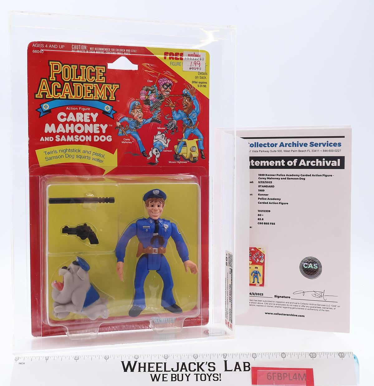 Carey Mahoney & Samson Dog AFA 80+ 80/85/85 Police Academy 1989 Kenner Figure