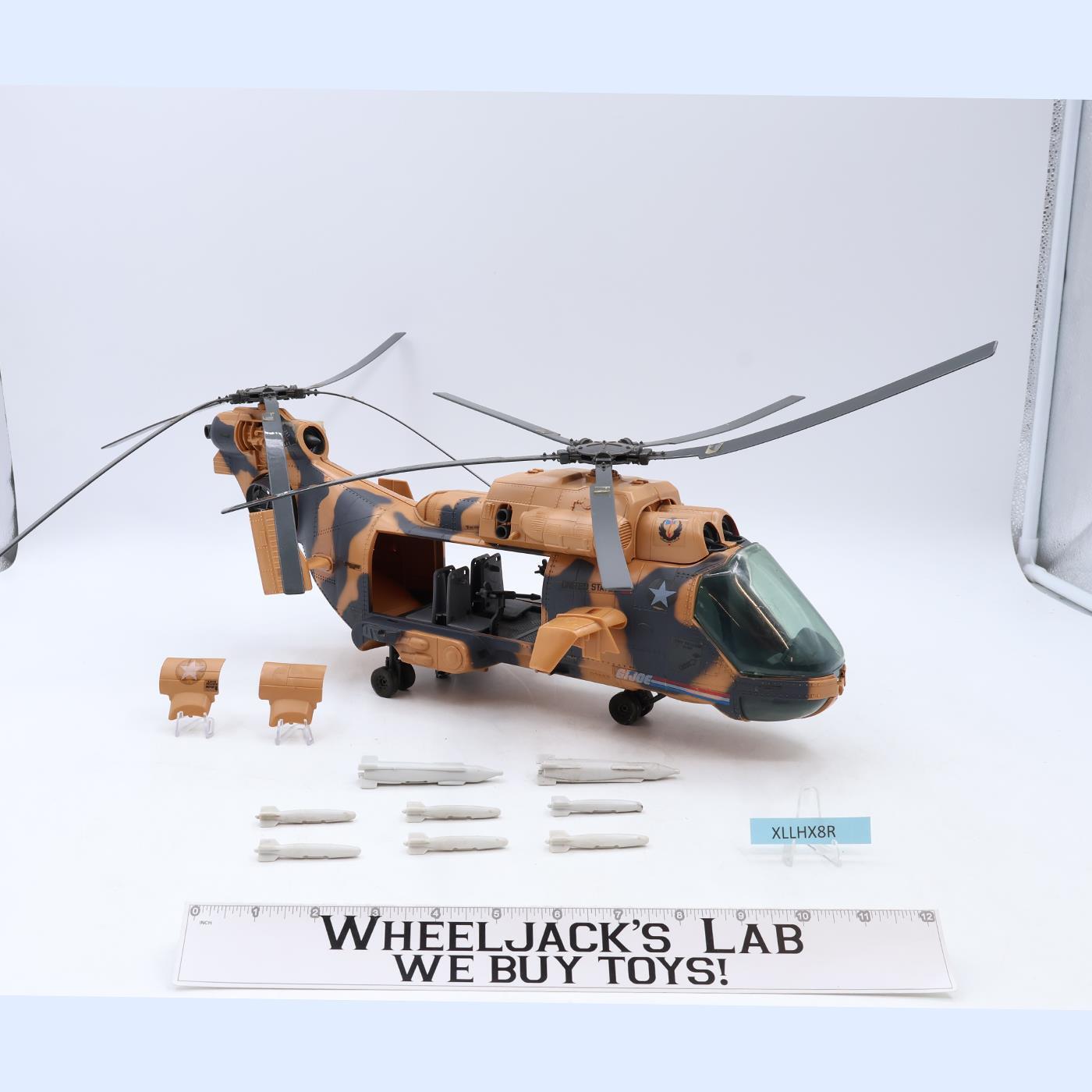 Condition: Rated 85 with light wear, needs cleaning/dusting. The windshield has a broken tab. The blades are warped. Our grading scale is 1 - 100, with mint flawless at 100, near mint at 95, excellent at 90, and so on. Comes as shown. Sticker Condition: Has some wear. Accessories: Missing turret gun and the driver.Joint Condition: Tight.