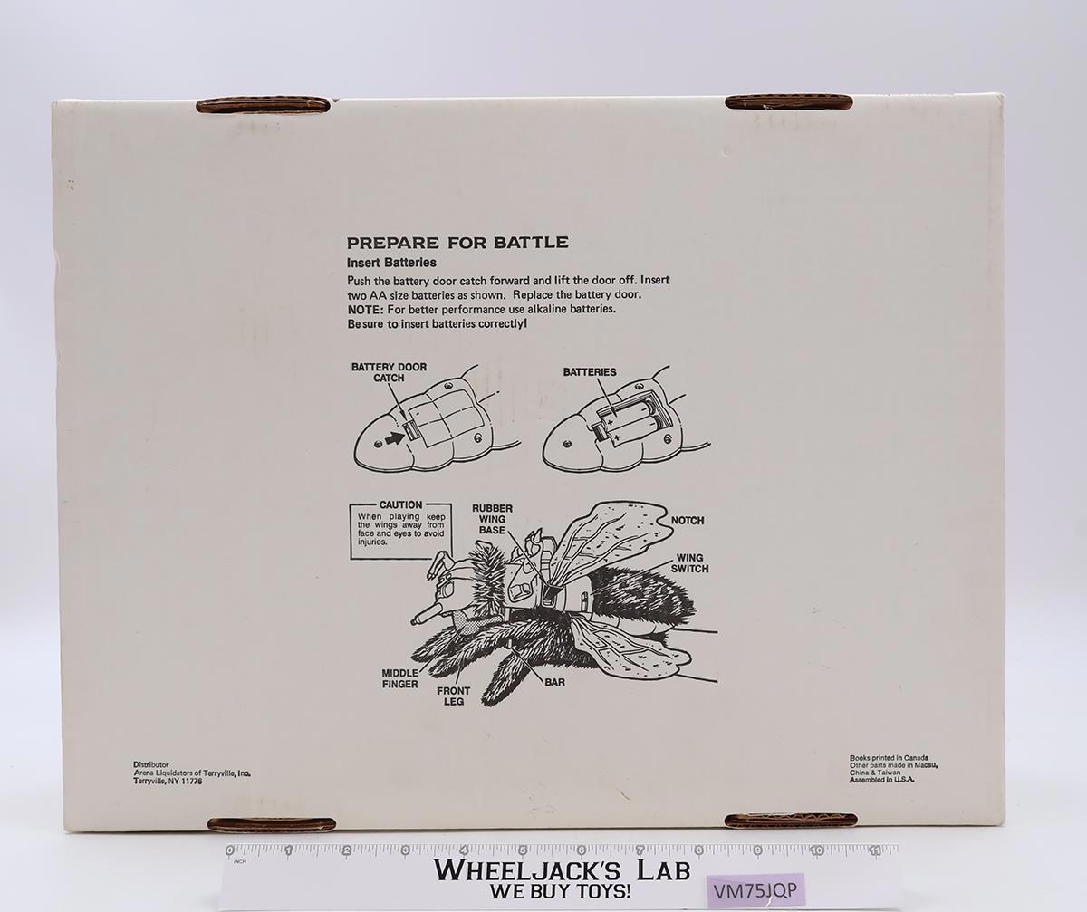 Condition: Rated 83 with light wear. There are melt marks on the back end of the Dragonflyer. The electronics do not work, but the battery compartment is clean. One of the wings is glued into place. It is not broken. Our grading scale ranges from 1 to 100, with Mint Flawless at 100, Near Mint at 95, Excellent at 90, and so on. Comes as shown.