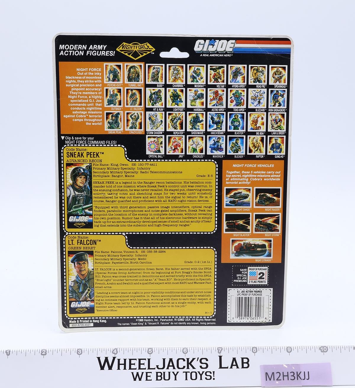 Sneak Peek & Lt. Falcon Night Force Complete 34 Cardback G.I. Joe 1988 Hasbro