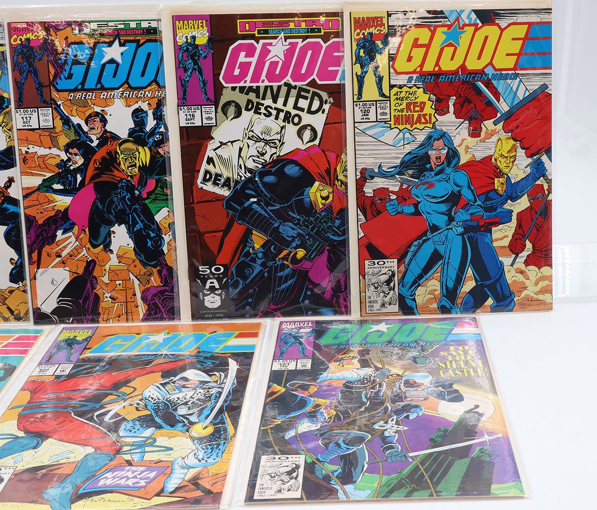 Condition: This is a lot of 7 GI Joe Comic Books from the 1990s. Includes Issues 116-122. Issues 116-118 are Parts 1-3 of G.I. Joe Destro: Search and Destroy. Remaining issues are G.I. Joe: A Real American Hero. The condition varies, but they appear in fair to good condition. Some pages may be faded or torn. Some books have creasing on spine. Staples may be loose on some. Books may have small tears. Covers may have bends or creases. All books come in a mylar sleeve with a backer board. Comes as shown.