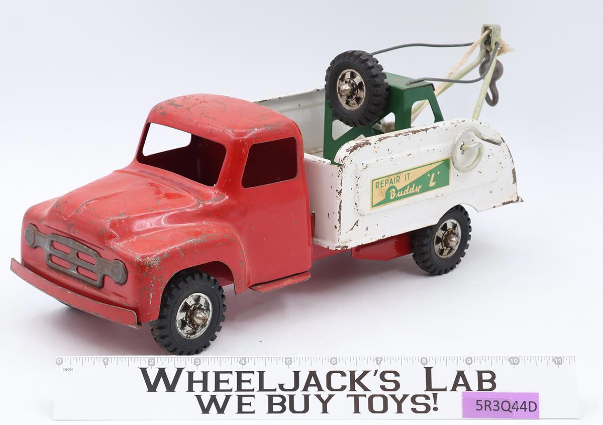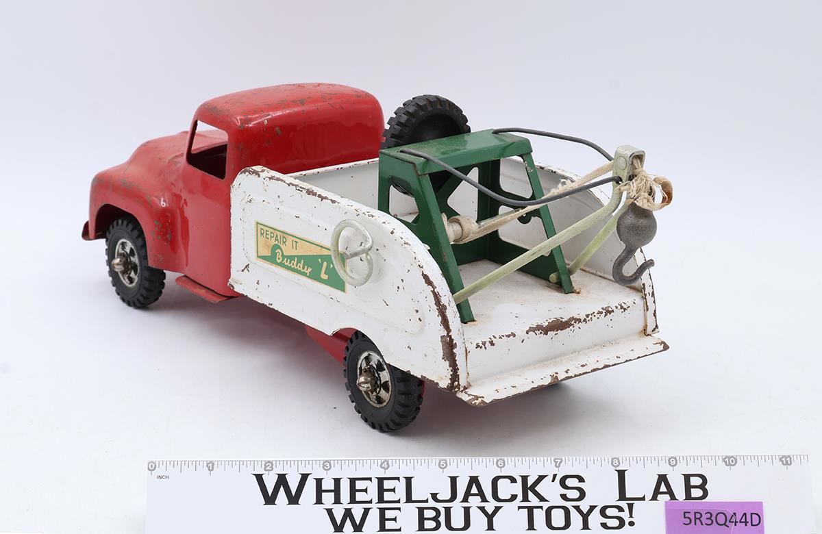 Red & White Repair -It Tow Truck Pressed Steel 1950s Buddy L Vintage Wrecker