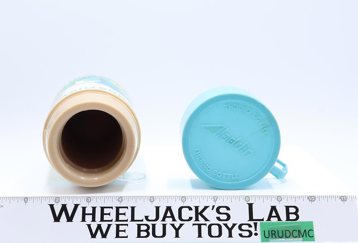 Thermos: Included; plastic. Thermos is missing inner lid; outer lid/cup has a crack in it. Graphics have light wear; thermos needs cleaning.