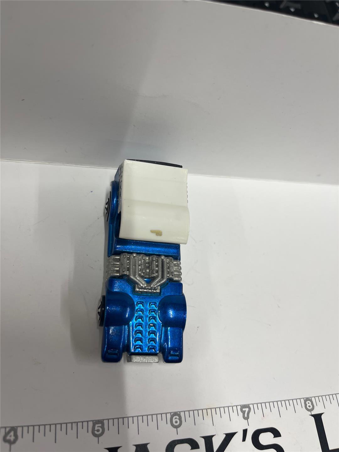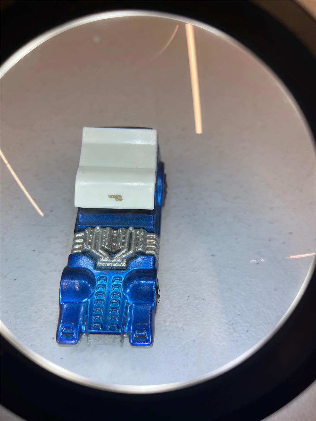 Canopy Top- Intact; lettering in good condition. Gold "Hot Wheels" decal on front of white top (last photo is taken through a magnifying lens to try to show it better).