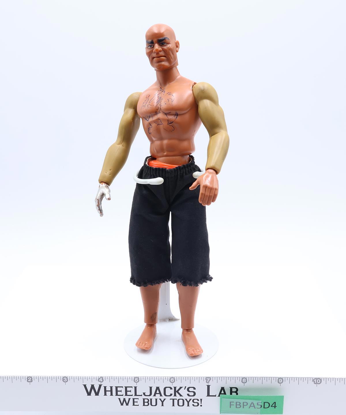 Condition: The figure has some wear. The arms are faded. There are some melt marks on his legs. The "steel" is rubbing off his hand. The chest tattoo is still visible. The bulging muscle and chopping mechanism works. Comes as shown.