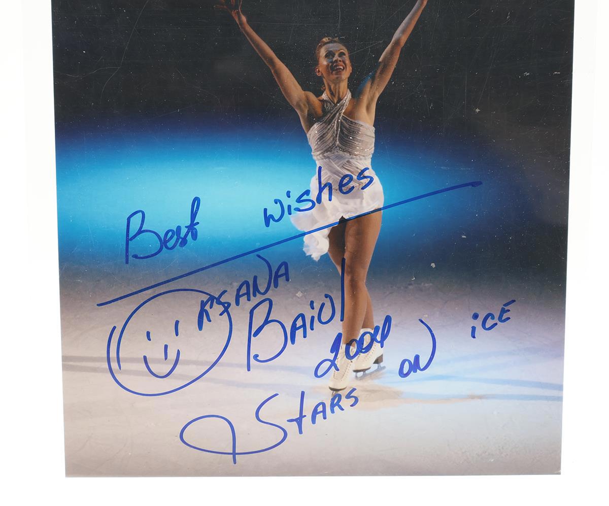 Condition: The picture has light wear. Autographed by Oksana Baiul. It does NOT have a certificate of authenticity. Comes as shown.
