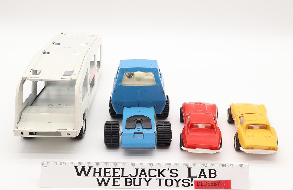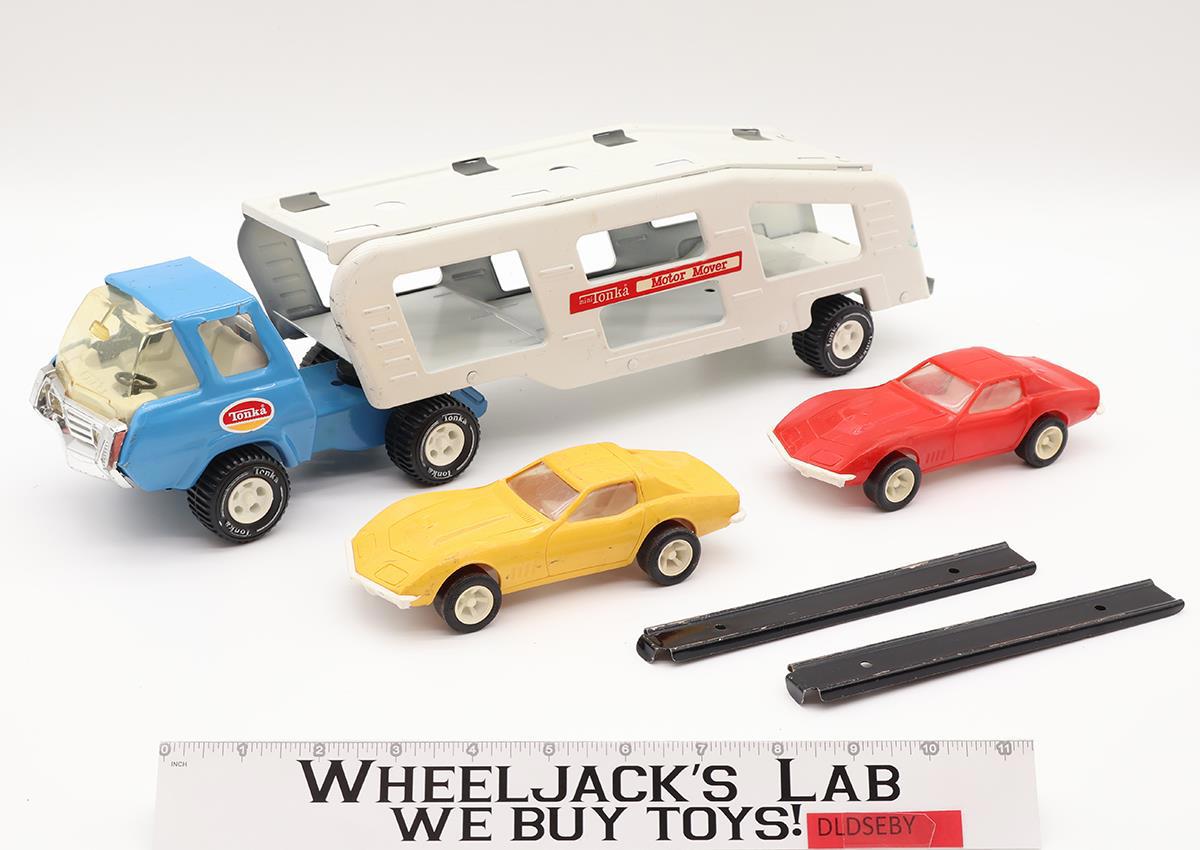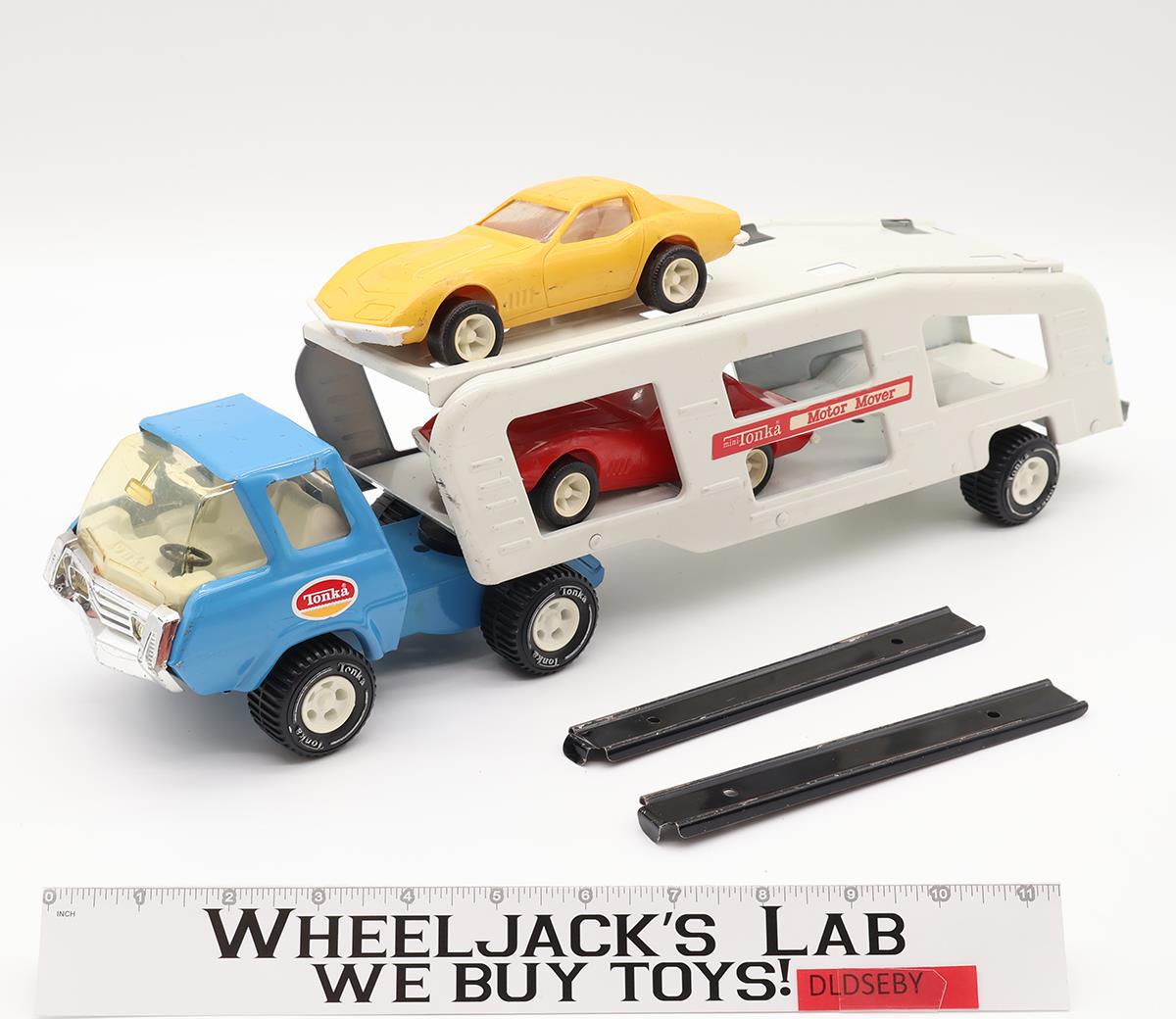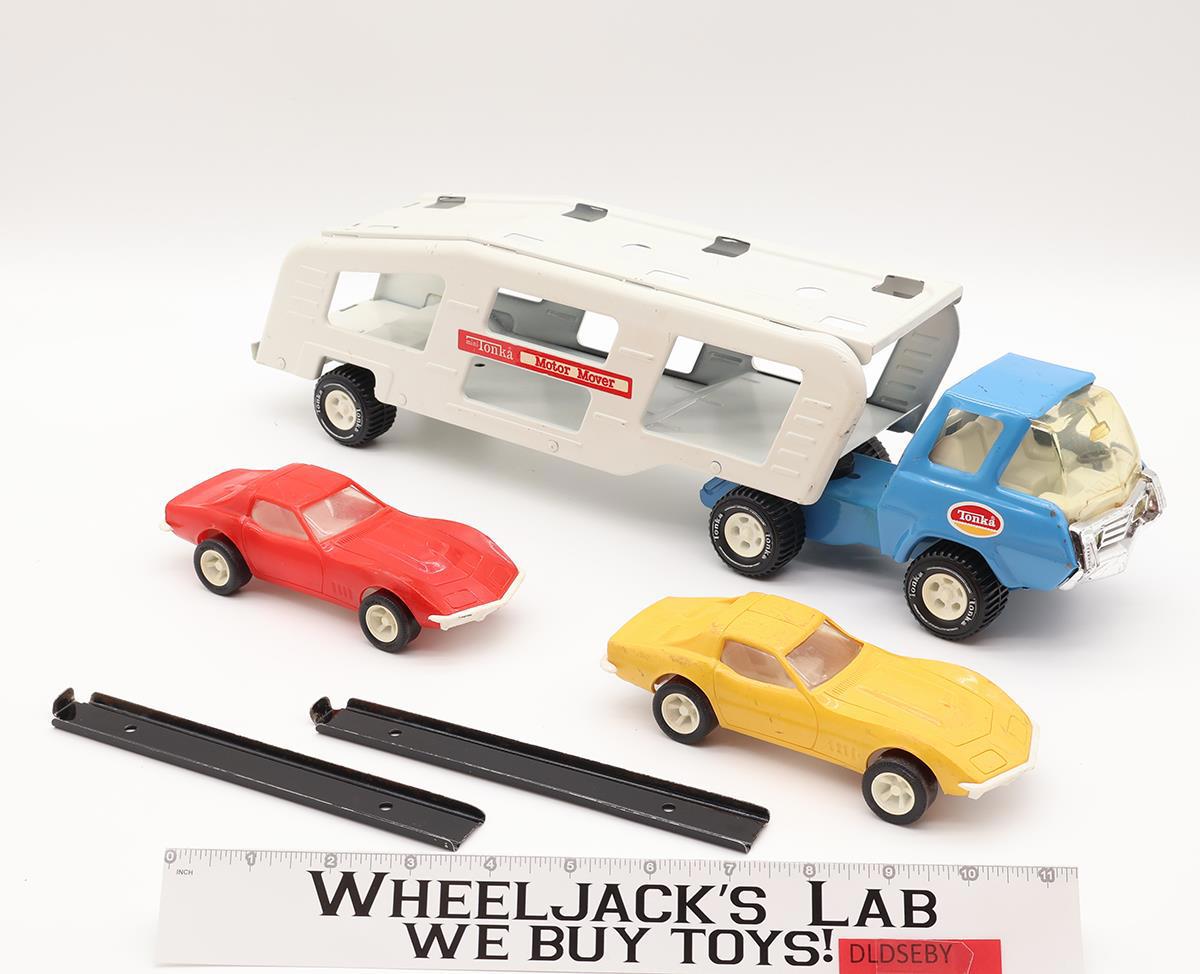 Motor Mover Car Carrier w/ Two Corvettes + Ramps Pressed Steel 1970s Tonka