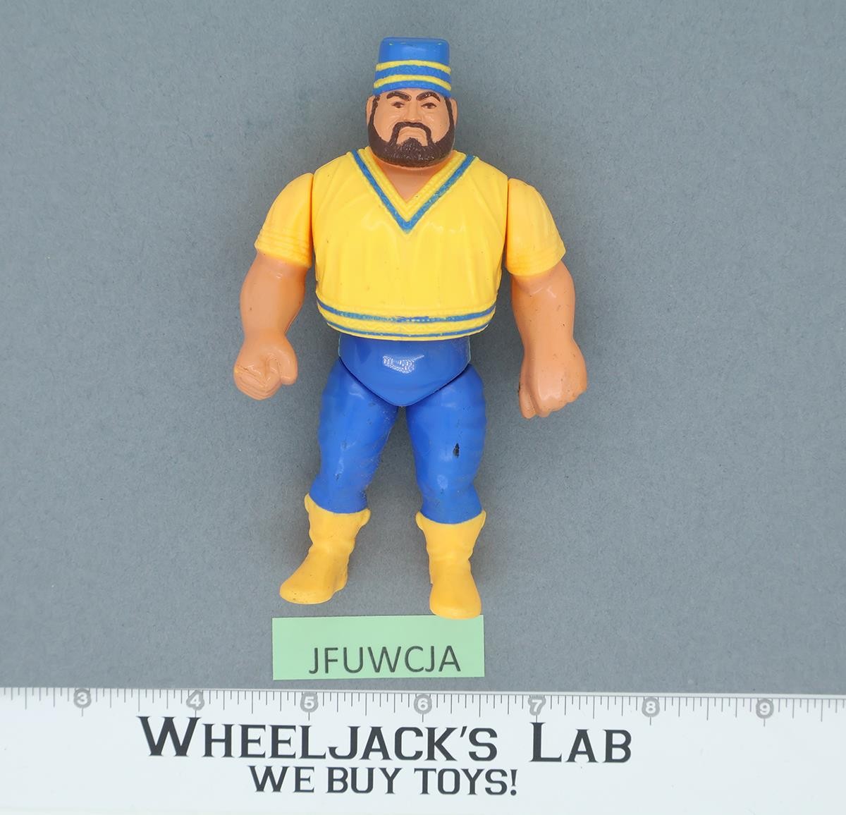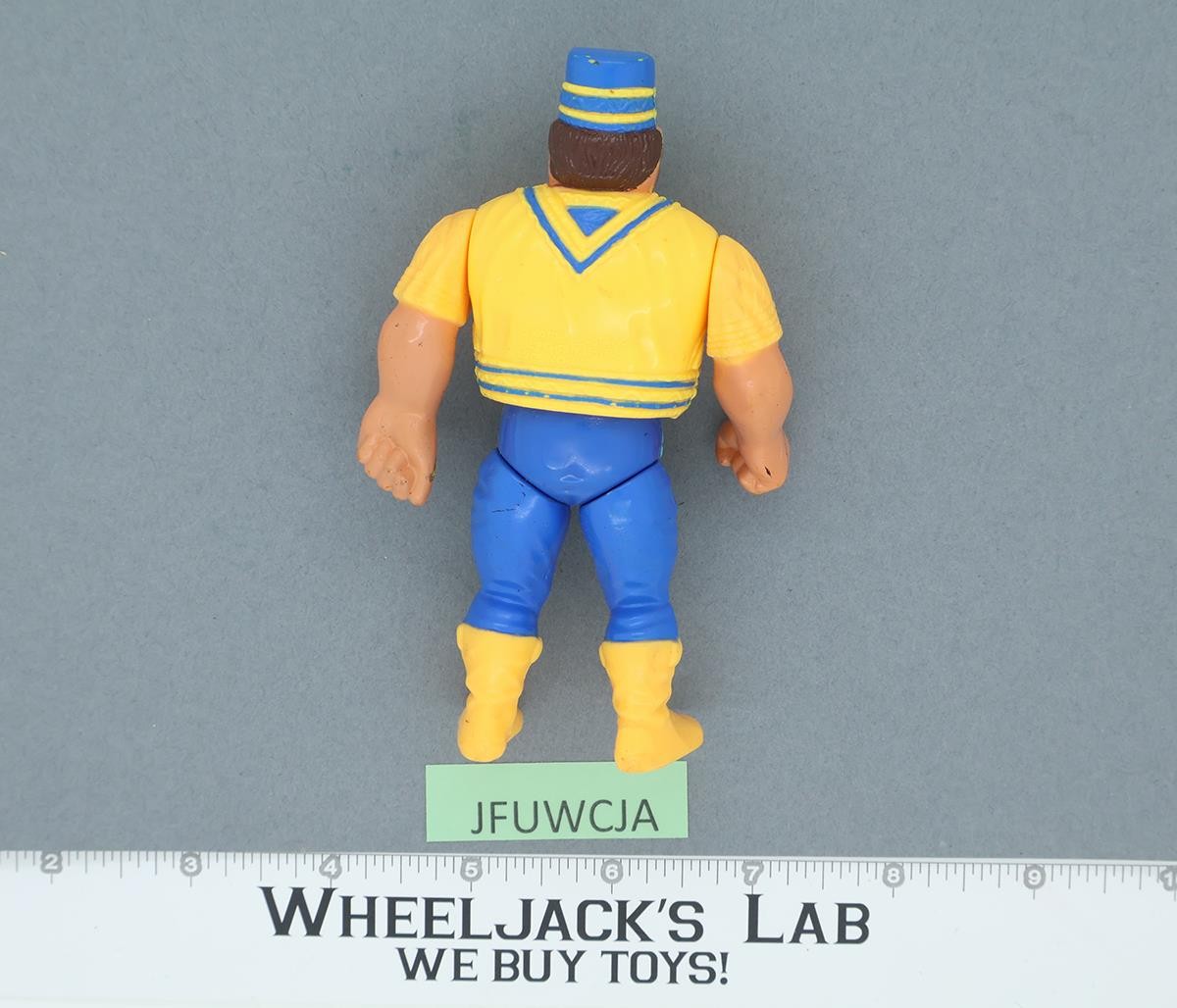 Condition: Rated 82 with some wear. The body slam mechanism does work. Our grading scale is 1-100, with mint flawless at 100, near mint at 95, excellent at 90, and so on. Comes as shown.