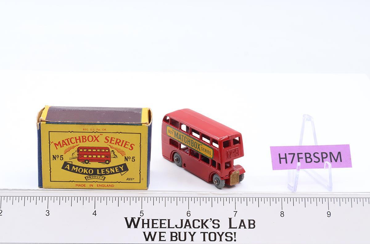 London Double Decker Bus No. 5 MOKO Lesney Matchbox 1957 Vintage England w/ Box