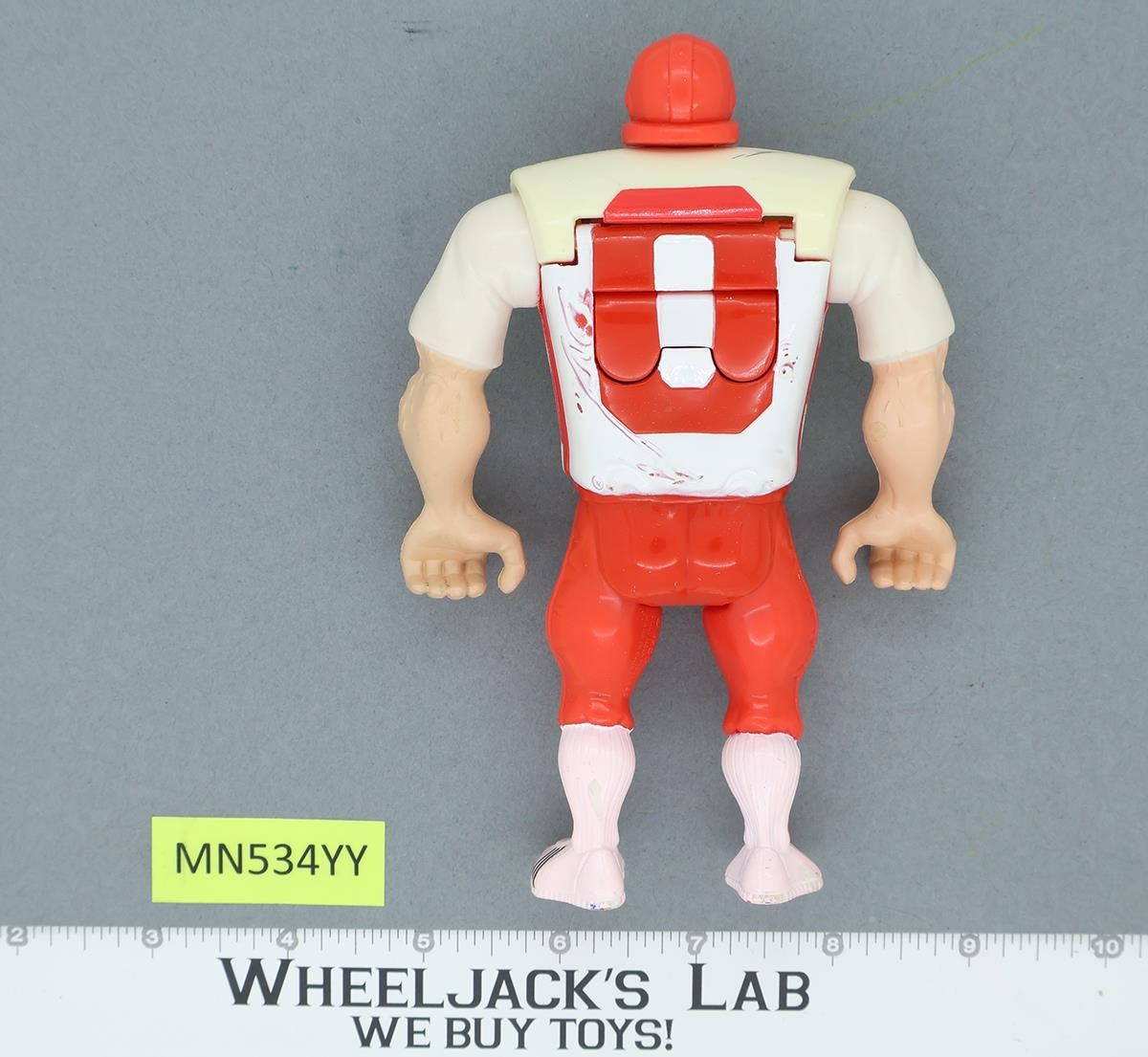 Condition: Rated 85 with light wear & fading. Jersey has light yellowing. The mechanism does work. Some wear marks/scratches on the jersey & pants. Needs light cleaning. Our grading scale is 1 - 100, with mint flawless a 100, near mint a 95, excellent a 90, and so on. Comes as shown.