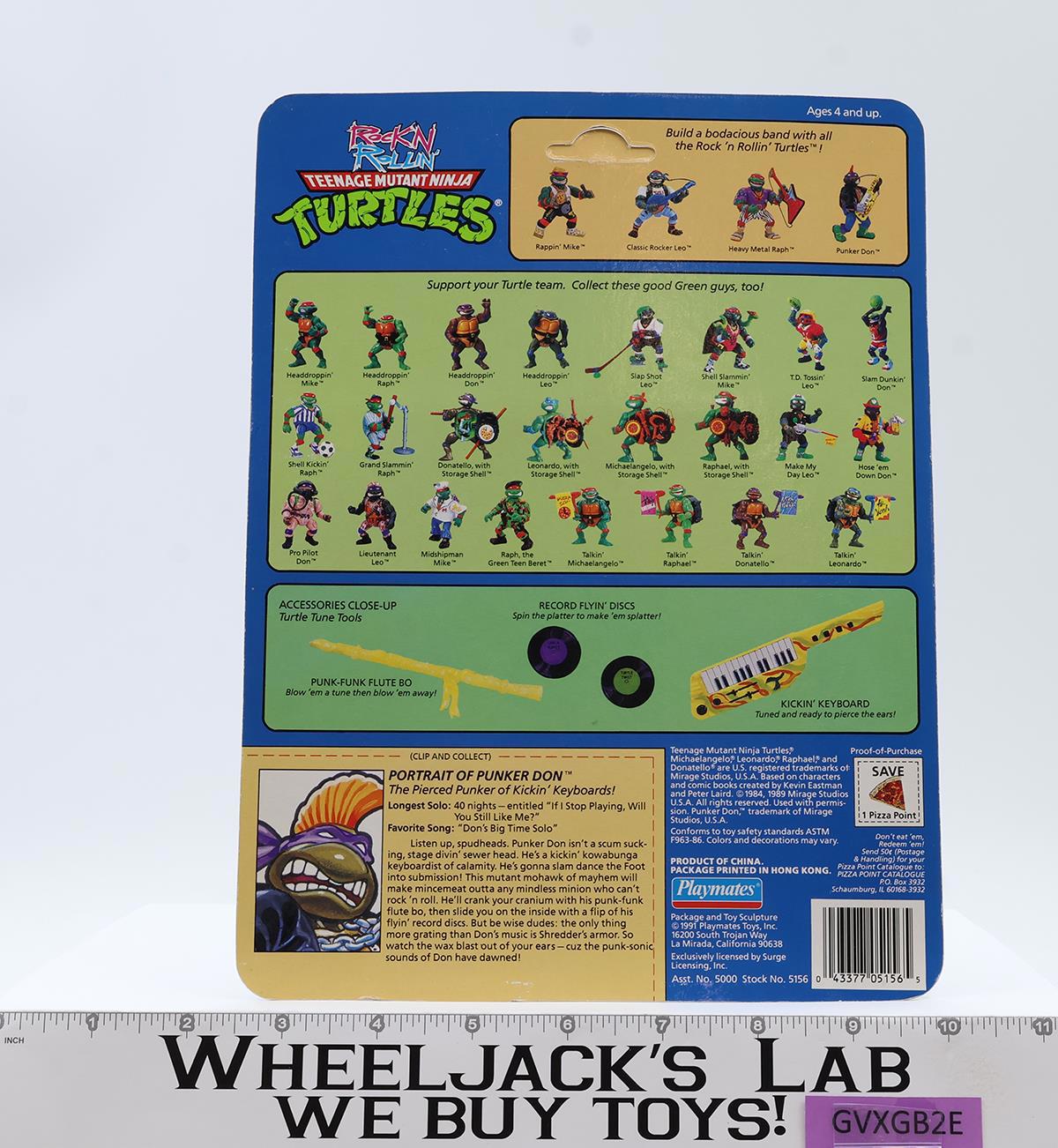 Punker Don Rock 'N Roll Teenage Mutant Ninja Turtles TMNT 1991 Playmates MOSC
